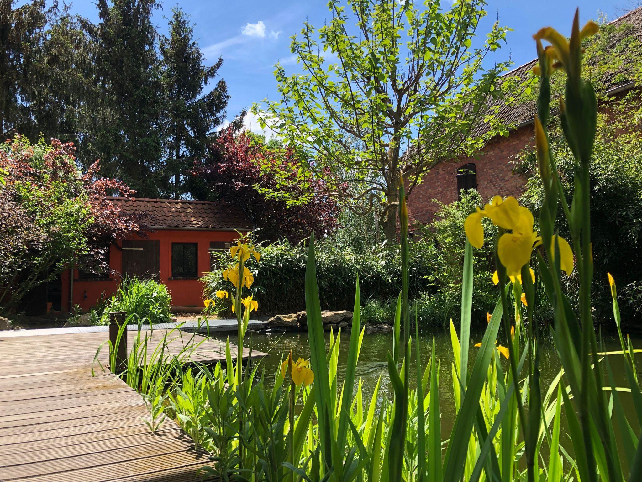 Im geschützten Innenhof lädt ein idyllischer Teich mit Fischen und Schildkröten zum Verweilen ein, während der weitläufige Garten hinter dem Haupthaus mit Pool, Grillmöglichkeiten und viel Platz für Spiel und Entspannung begeistert. Ein separater Partyraum sorgt für gesellige Abende, und die voll ausgestattete Küche sowie der gemütliche Wohnbereich bieten alles für unvergessliche gemeinsame Stunden.