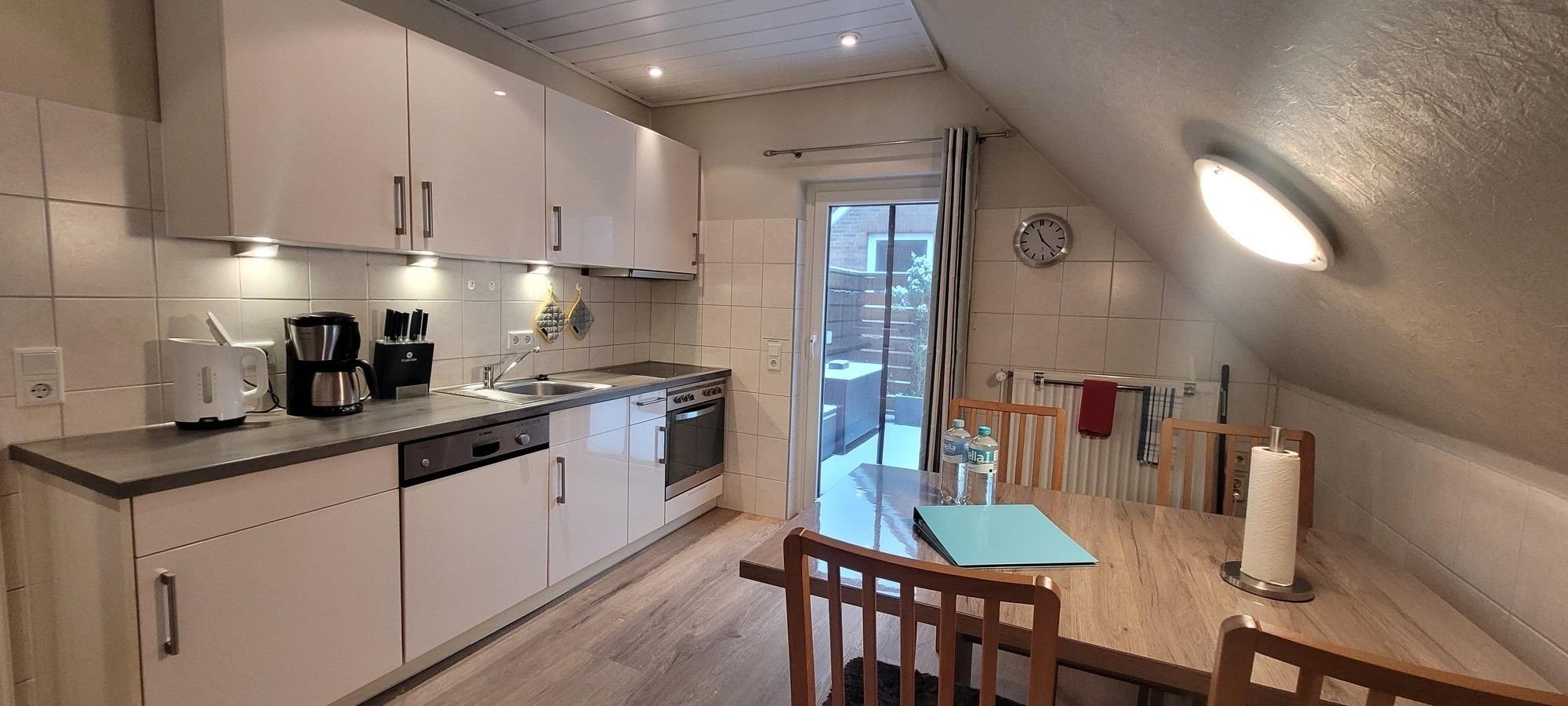 Die Wohnung befindet sich im Dachgeschoss und verfügt über einen eigenen Stellplatz direkt an der Ferienwohnung.