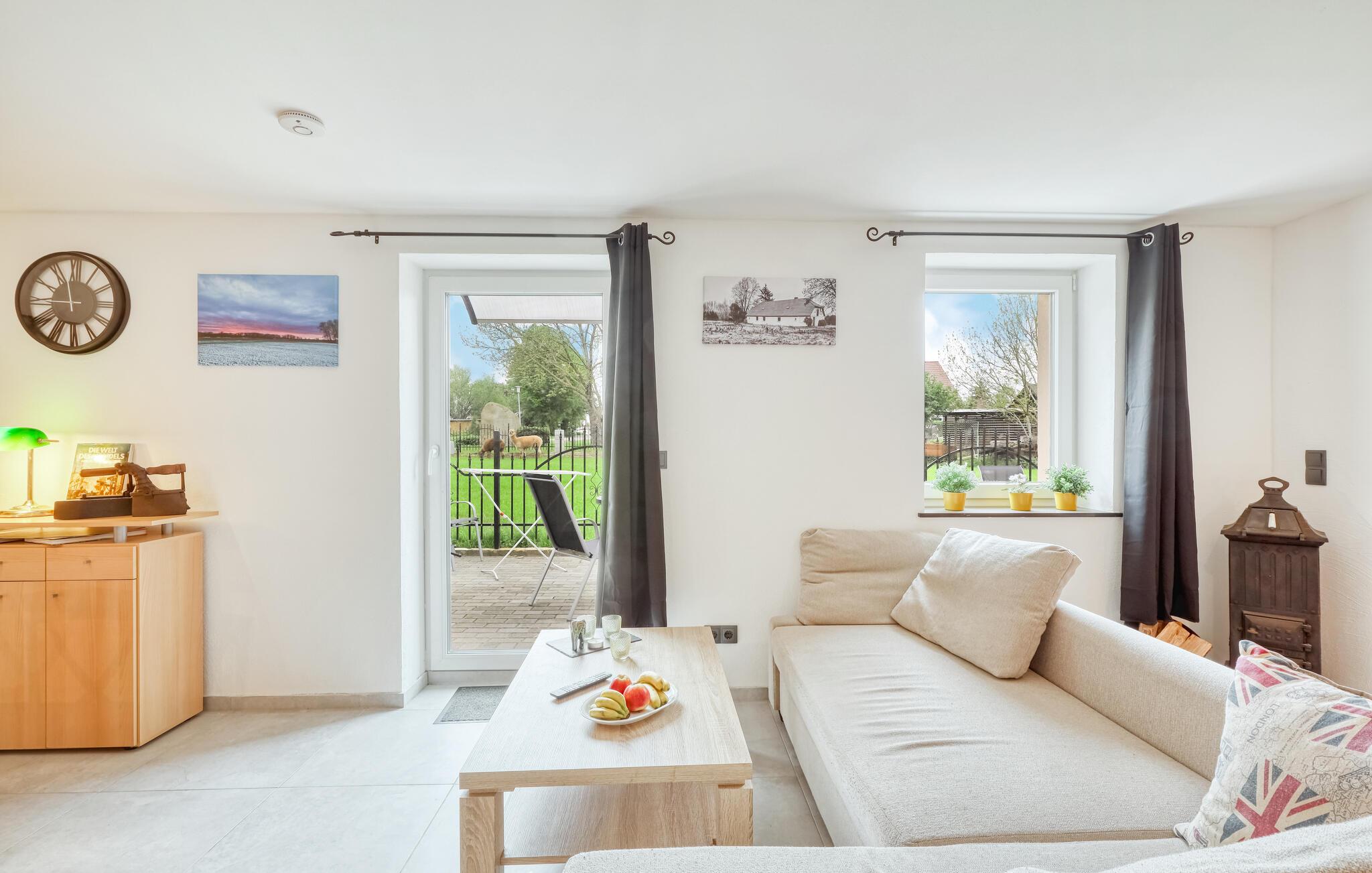 Velkommen til denne skønne lejlighed, der ligger i et charmerende landskab med alpakaer i Schmatzin, og hvor I får en dejlig base for en ferie i fredelige, naturskønne omgivelser. Lejligheden er komfortabelt indrettet med et veludstyret køkken, to soveværelser og en meget lys og rummelig stue. Her får I godt med plads og faciliteter til madlavningen, brætspilsaftener og ren og skær afslapning i sofaerne efter en aktiv feriedag.