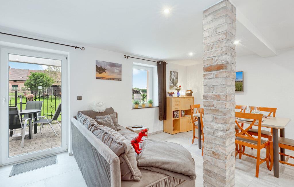 Velkommen til denne skønne lejlighed, der ligger i et charmerende landskab med alpakaer i Schmatzin, og hvor I får en dejlig base for en ferie i fredelige, naturskønne omgivelser. Lejligheden er komfortabelt indrettet med et veludstyret køkken, to soveværelser og en meget lys og rummelig stue. Her får I godt med plads og faciliteter til madlavningen, brætspilsaftener og ren og skær afslapning i sofaerne efter en aktiv feriedag.