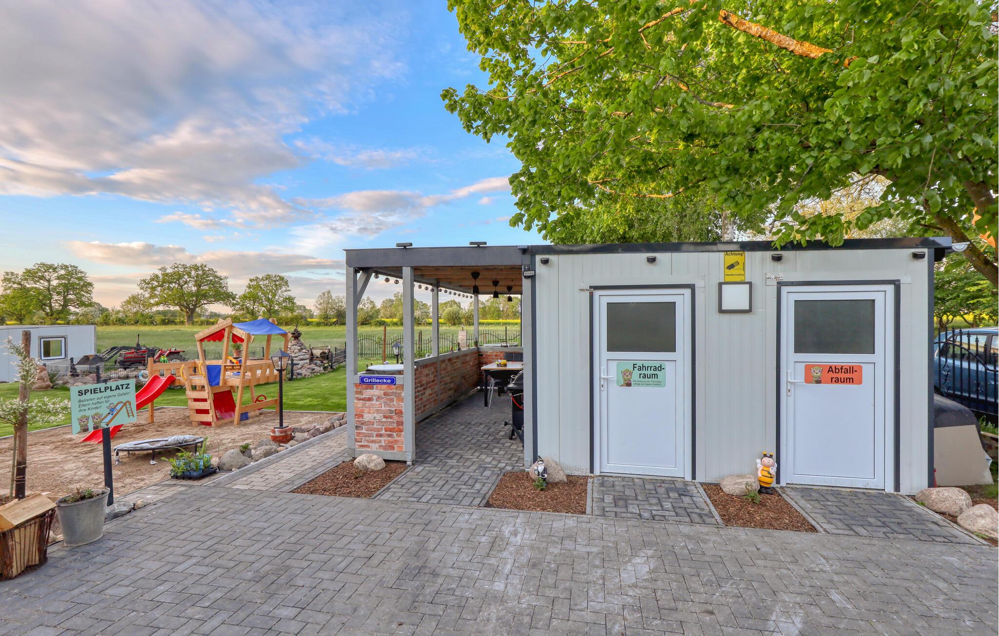 Udearealet dækker 6000m2 og er en oase af velvære for jer alle. Slap af i solen ved den indhegnede havedam med fisk og udfordr hinanden til en duel ved fodboldbanen eller bordtennisbordet. Der er et aflåseligt cykelskur, hvor I kan opbevare jeres cykler, og så er her masser af godt udendørs legetøj til både store og små børn.