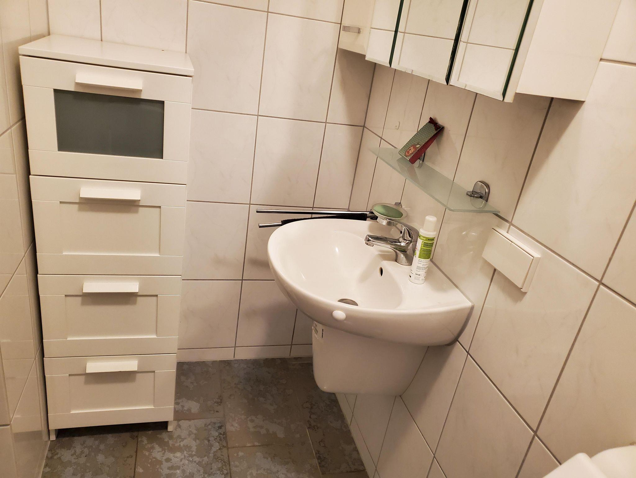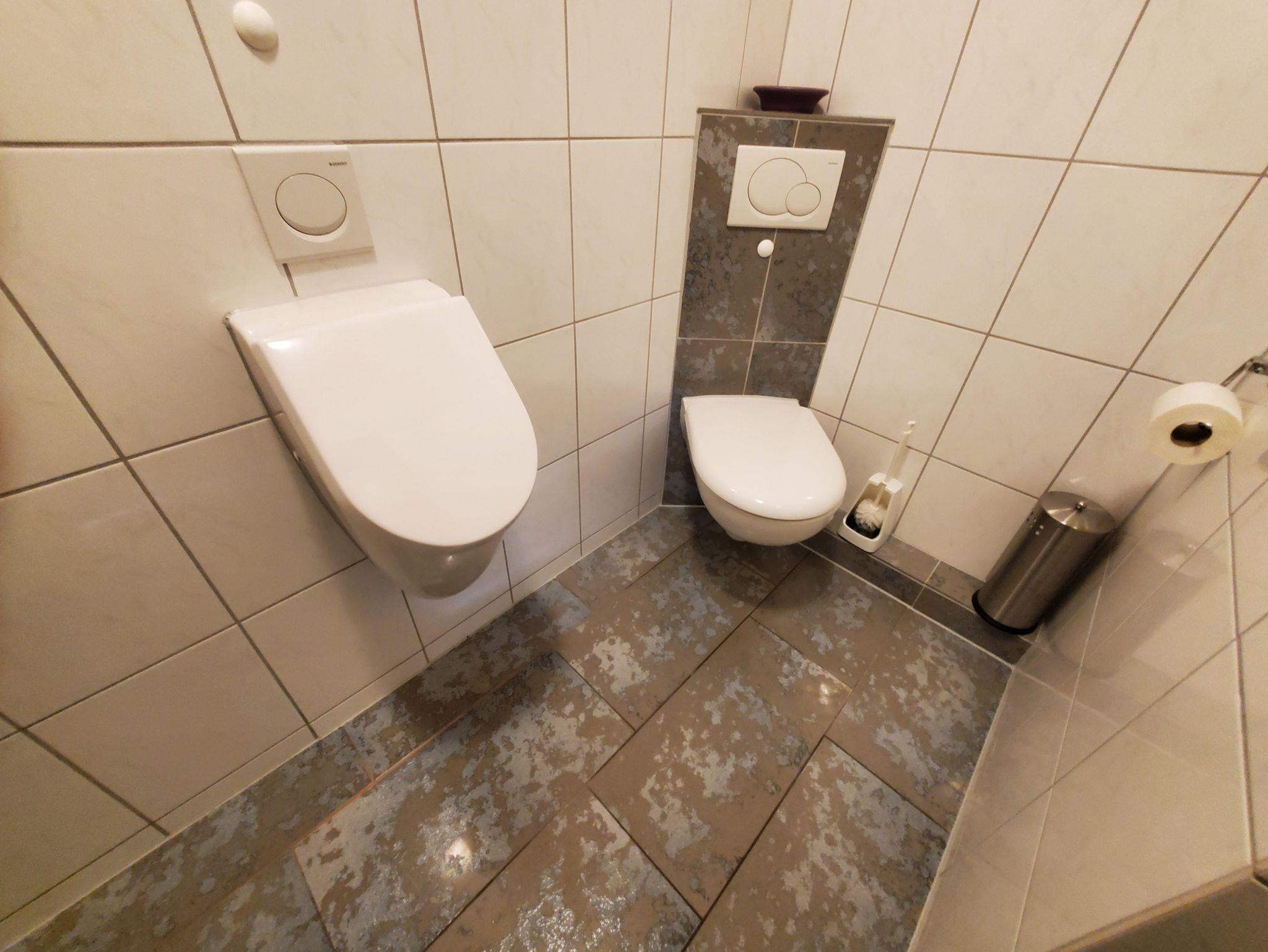- Bad mit Badewanne und bodengleicher Dusche mit Duschklappsitz