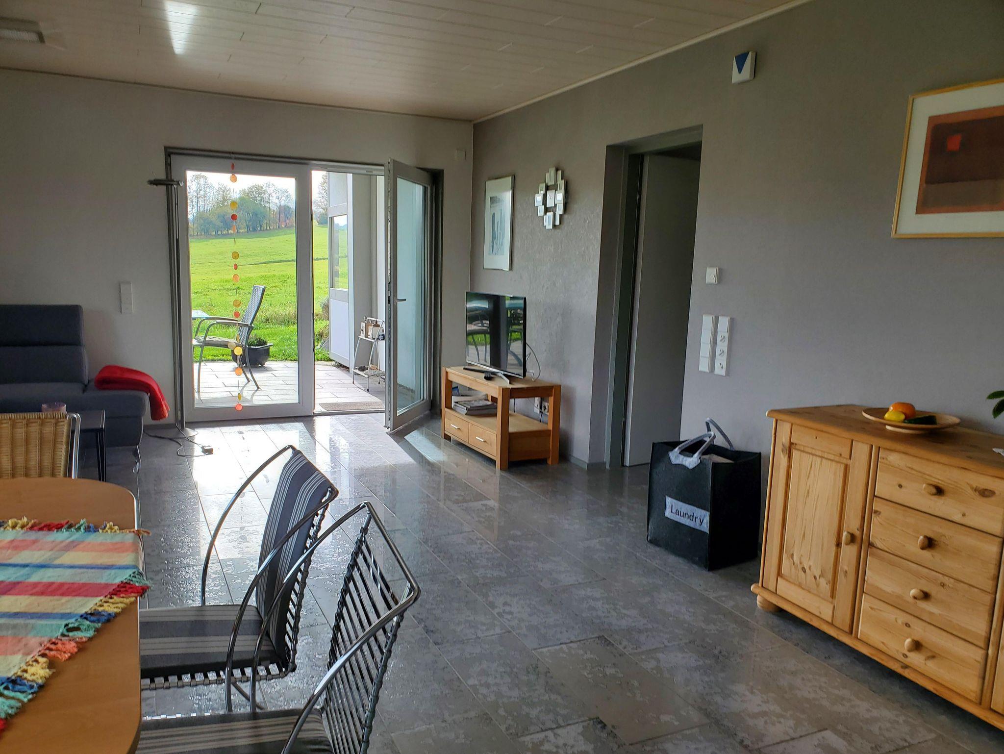 Die lichtdurchflutete, ebenerdige, rollstuhlgeeignete Ferienwohnung hat eine Fläche von ca. 90qm mit einem sep. Eingang.