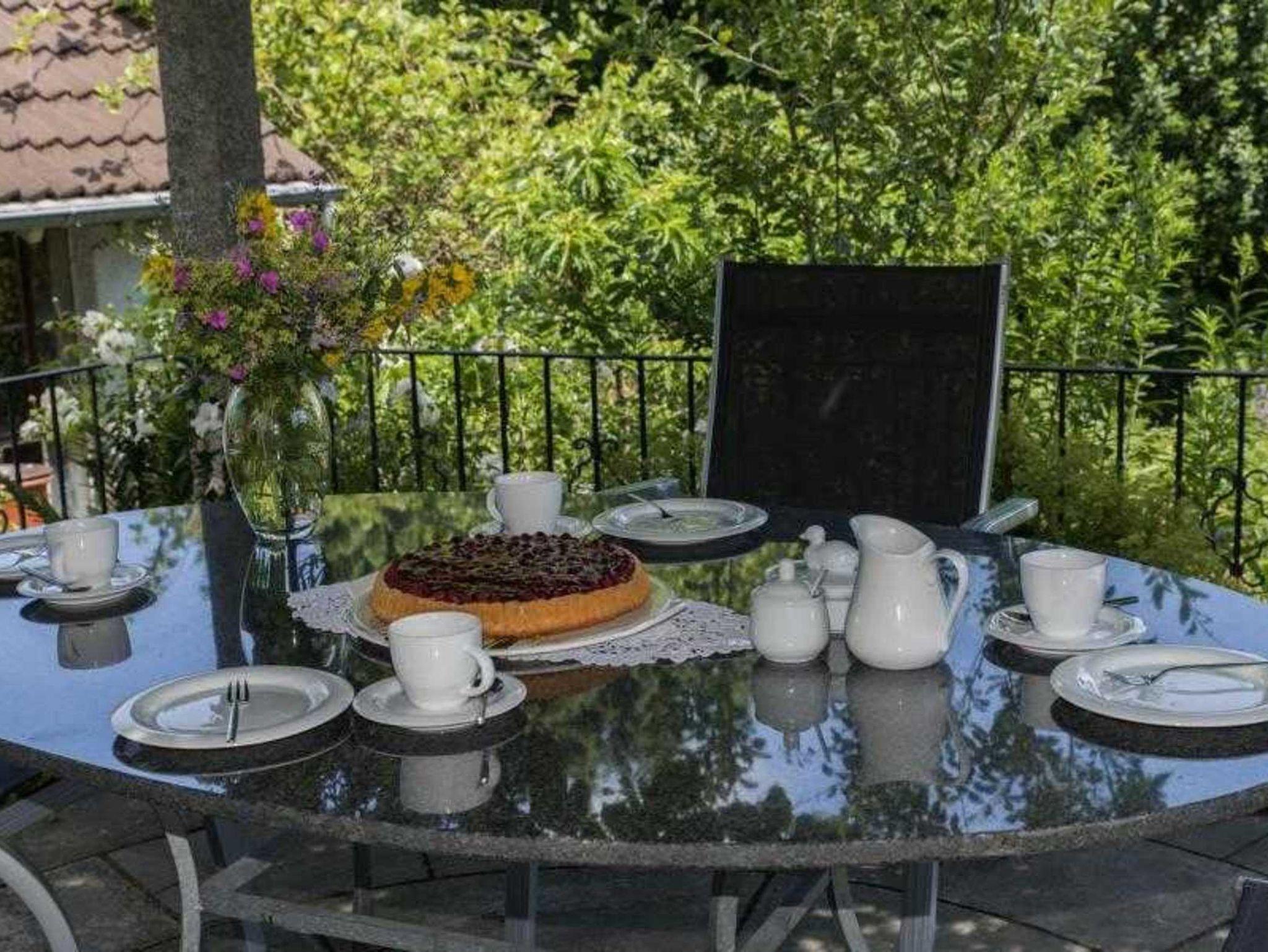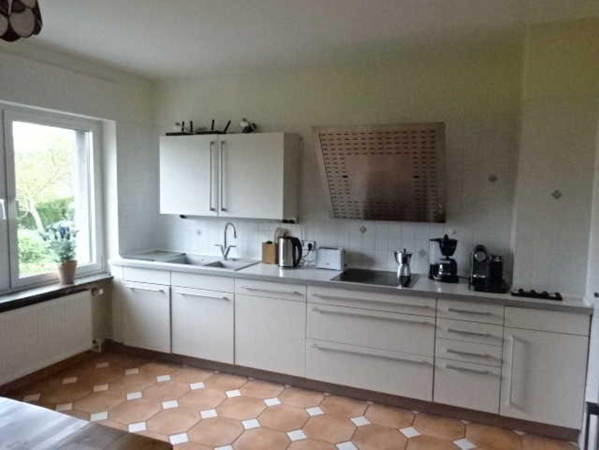 Gesamtes Haus bestehend aus 3 Schlafzimmern mit jeweils 1 Boxspringdoppelbett und hautfreundlicher Baumwollbettwäsche, 2 Bädern, davon ein Bad im EG behindertengerecht, 1 Wohnzimmer mit angeschlossener Veranda und kleiner Hausbibliothek, 1 Wohnküche mit Speisekammer, Komfort-Küchenausstattung für Selbstversorgung, Waschkeller mit Waschmaschine und Trockner sowie Möglichkeit zur Wäschetrocknung im Freien, Vorratskeller gefüllt mit traditionellen Konfitüren und Obst- und Gemüsekonserven aus eigenem Landhausanbau, Saunakeller mit Infrarotsauna und Massageliege und Möglichkeit von Massagen, Gemüse-, Kräuter- und Blumengarten rund um den von einem Blauregen überdachten Freisitz mit einem Holzkohlekugelgrill und Feuerschale und romantischer Kerzenbeleuchtung für laue Sommerabende. Gehobene Ausstattung mit Parkett-, Fliesen- und Natursteinböden, Ledermöbel, Boxspringbetten, hochwertige Sanitäreinrichtungen.