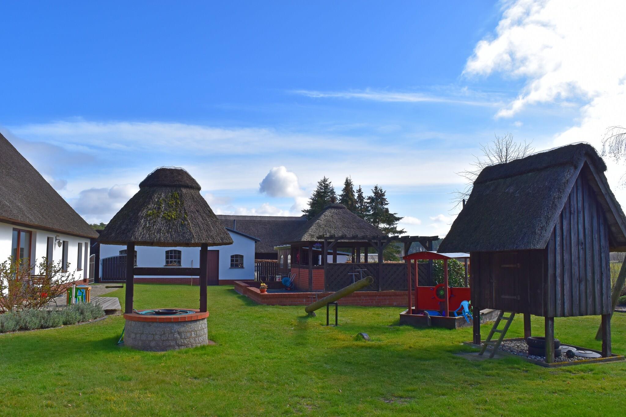 Ferie under stråtag! Tilbring din ferie i Mecklenburg-Vorpommern, tæt på Salzhaff og de indbydende strande ved Østersøen! Denne indbydende og rummelige ferielejlighed byder på masser af plads og komfort for op til 6 personer og et lille barn. Dit sommerhus ligger midt ude på landet i bydelen Bantow, som hører til Alt Bukow, på en stor og meget velholdt ejendom. Dit feriehus har 2 badeværelser, 2 soveværelser og et meget rummeligt køkken-alrum. Det udstyret køkken er veludstyret med alt hvad du behøver for at tilberede et godt måltid. Et rigtigt højdepunkt er haven, som er delvist tilgængelig for gæster til at bruge. Lige foran indgangen er der en overdækket siddeplads med mulighed for grill, en lille legeplads for børnene og husdyr er også velkomne. Efter en begivenhedsrig dag kan du forkæle dig selv med en lækker bøf fra grillen eller nyde freden og roen med en solnedgang. Dine meget imødekommende udlejere giver dig mulighed for at tilbringe en aften på røgeriet (mod betaling). Cykler du medbringer kan trygt opbevares i et skur. Højdepunkter inkluderer: Alle forbrugsafhængige energiomkostninger, Wi-Fi, 2 gratis parkeringspladser Overbelægning med et lille barn op til 2 år muligt. Der er mange gode udflugtsmål at udforske i det omkringliggende område. Rerik med sine fantastiske strande er kun en kort køretur væk og kan også nås på cykel, såvel som Salzhaff, Boiensdorfer Werder og Kühlungsborn. Besøg hansestaden Wismar med dens store havn og murstensgotiske arkitektur. Warnemünde og hansestaden Rostock er heller ikke langt væk og er ideelle dagsture. Herfra kan du starte en dagstur til Danmark med Scandlines rederiet. Kun en kort køretur væk i Neubukow finder du et bredt udvalg af butikker, dagligvarebutikker, tankstationer og meget mere.