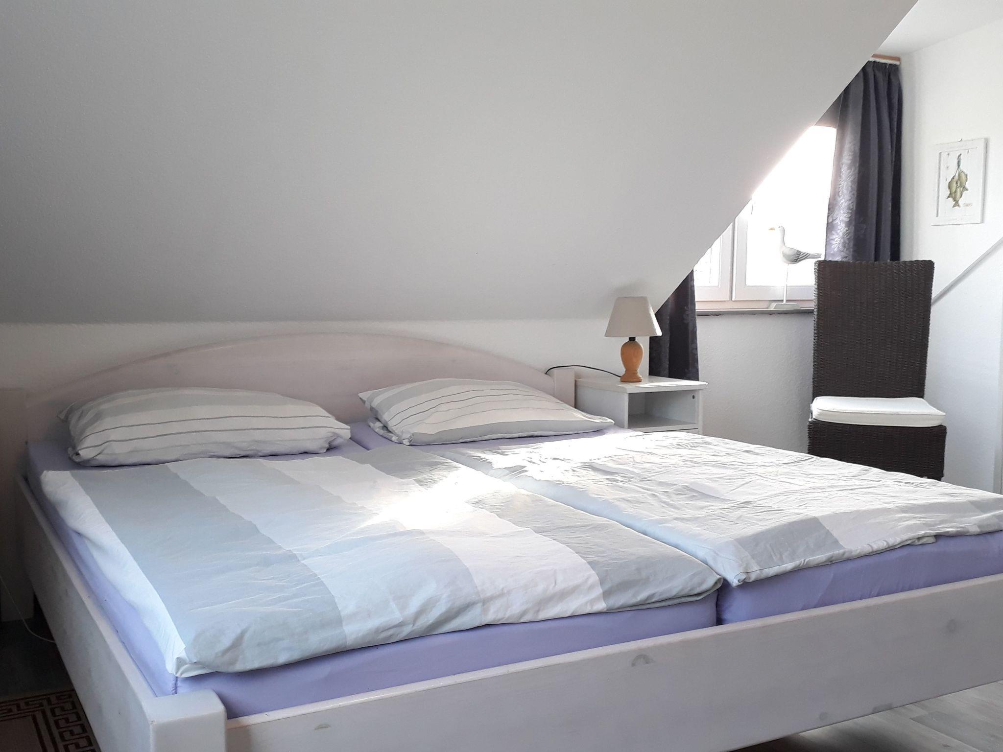 The ground floor consists of a living and dining room, as well as a bathroom with a WC and shower. The kitchen with a dishwasher has a little bar counter with two bar stools, where you can sit with a glass of wine pondering the next trip destination. A modern TV with a satellite receiver, a stereo system with a CD/DVD player and a fireplace stove for cooler days are available. Stair lead to the upper floor with the two separate bedrooms (one double bed, two single beds). The double bedroom also has a sofa that can be pulled out as a bed for a fifth person. A washing machine and wireless Internet access (payable) are available. The house is heated with electric storage heaters.