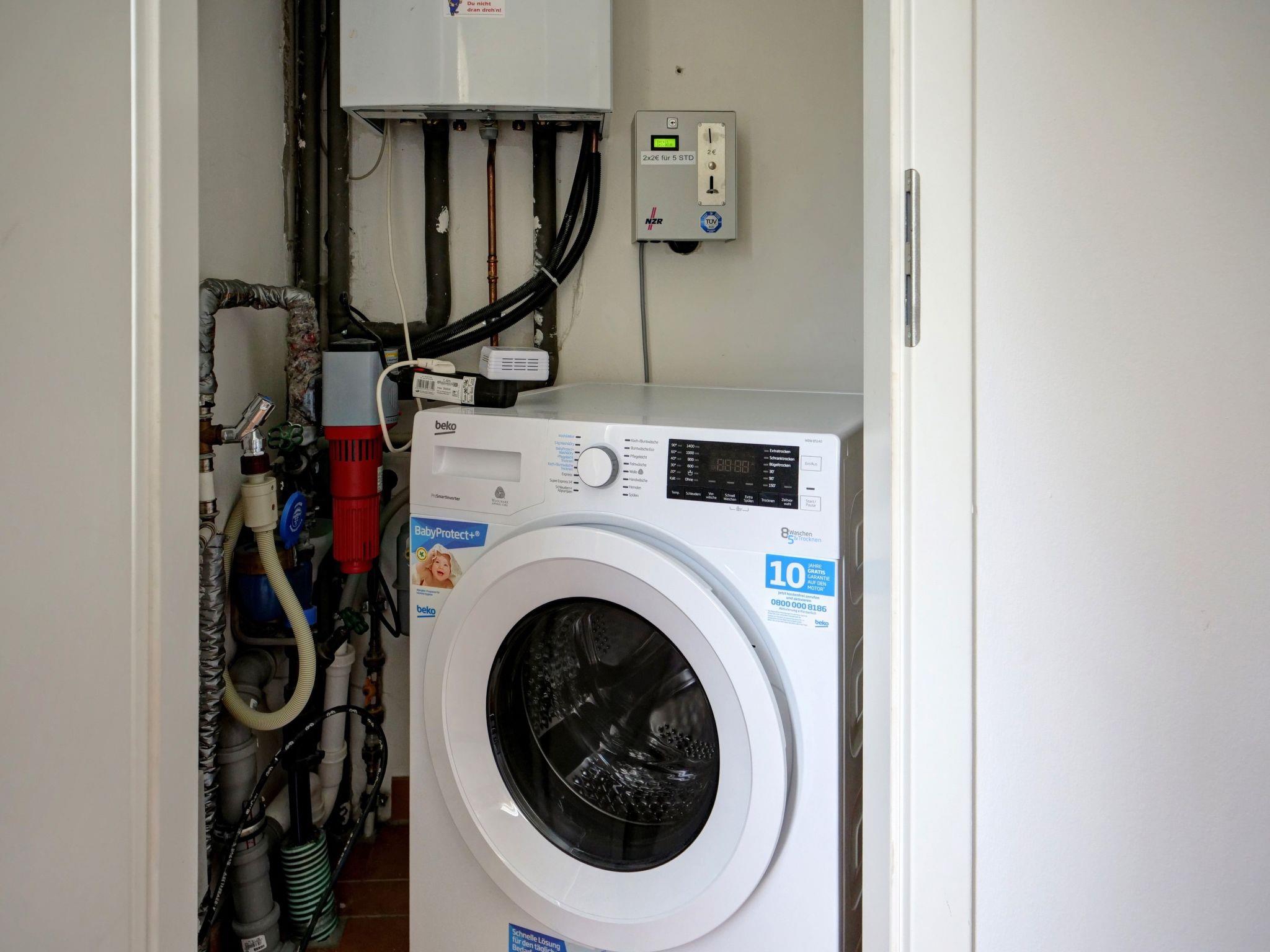 The outdoor area invites you to relax on the terrace, equipped with a barbecue and garden furniture - ideal for cosy hours outdoors. A handcart is available for hire for short trips to the beach. The entire house is fenced, making it ideal for guests with pets (for a fee). Even the laundry is taken care of: a coin-operated washing machine is at your disposal.