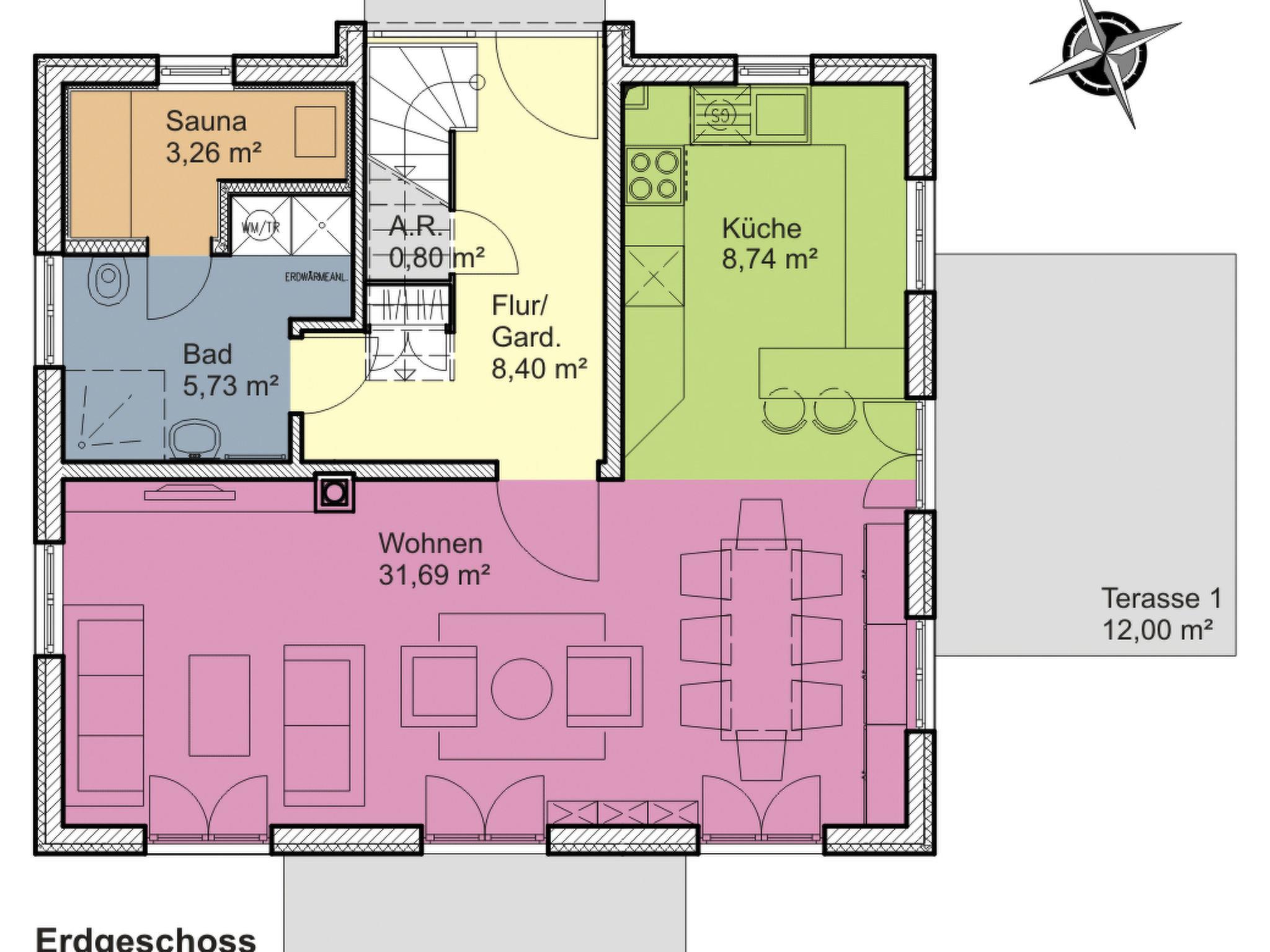 This house has a table with 10 seats, which is protected from the sun by an awning. There are also two sun loungers, a whirlpool and a beach chair on the fenced property. The covered outdoor pool (use from April to early November), which is located in the immediate vicinity, can be used by all guests, as can the sauna. An adventure playground (fenced in) and a large ball playground offer children from 2 to 80 plenty of opportunities to let off steam.