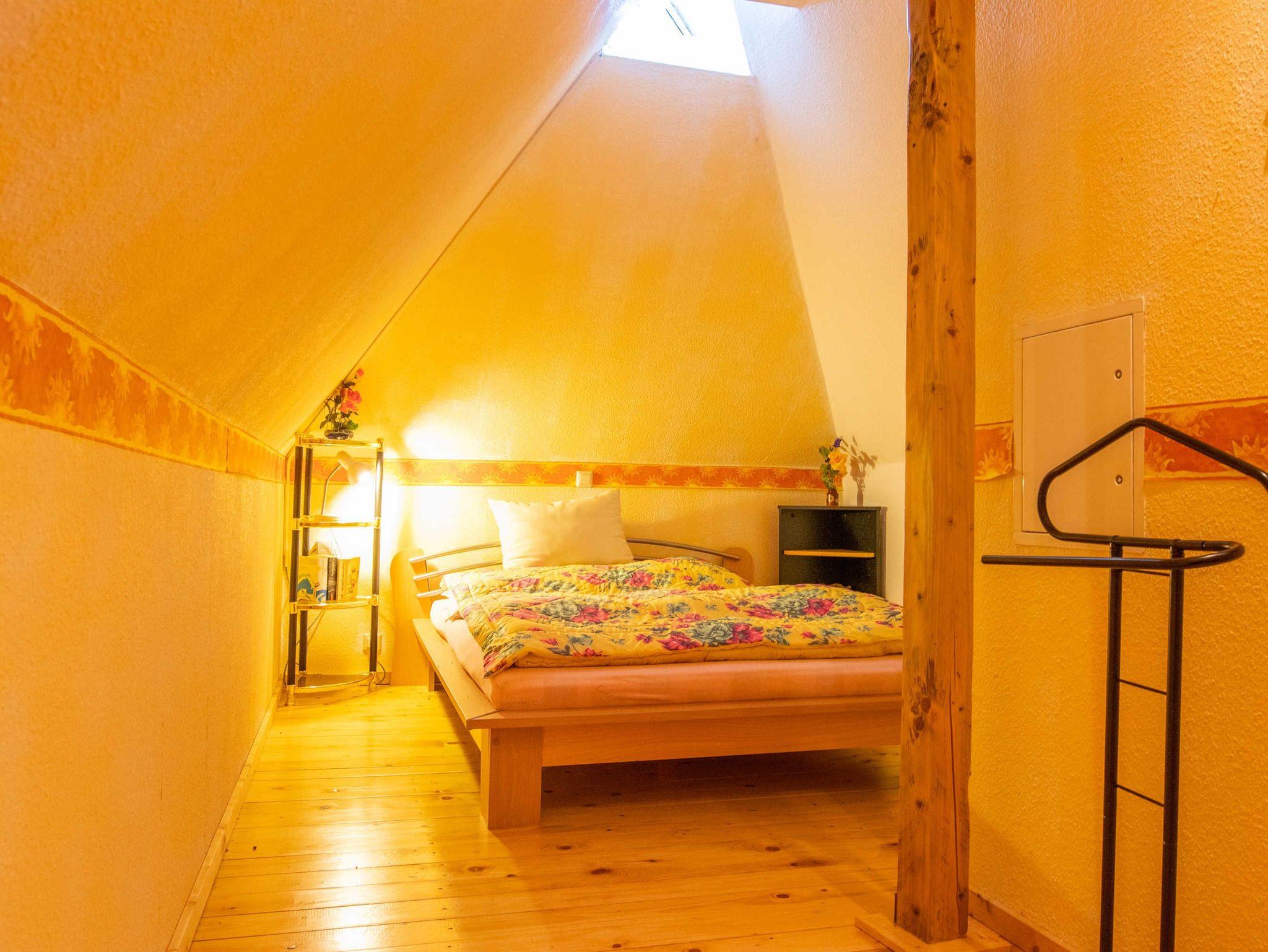Diese Ferienwohnung 1 unter Reet ist genau richtig für alle, die es gemütlich, familiär und ein bisschen besonders mögen. Auf zwei Etagen bietet sie Platz für bis zu fünf Personen ? ideal für Familien mit größeren Kindern oder kleine Gruppen. Im Wohnbereich erwartet dich eine Schlafcouch für eine zusätzliche Person sowie eine bequeme Liege - perfekt zum Entspannen, Lesen oder als Einzelbett nutzbar. Zwei separate Schlafzimmer bieten je ein französisches Doppelbett (140x200). Das erste Schlafzimmer im Obergeschoss dient als Durchgangszimmer zum zweiten Schlafzimmer im ausgebauten Spitzboden, den du über eine schmale Spartreppe erreichst. Dort kannst du übrigens ganz aufrecht stehen! Dazu gibt es eine voll ausgestattete Küche, ein Duschbad mit WC und einen separaten Eingang über das gemeinsame Treppenhaus. Ein Babyreisebett ist ebenfalls vorhanden. Für einen unkomplizierten und naturnahen Urlaub mit viel Charme und Platz unter dem Reetdach.