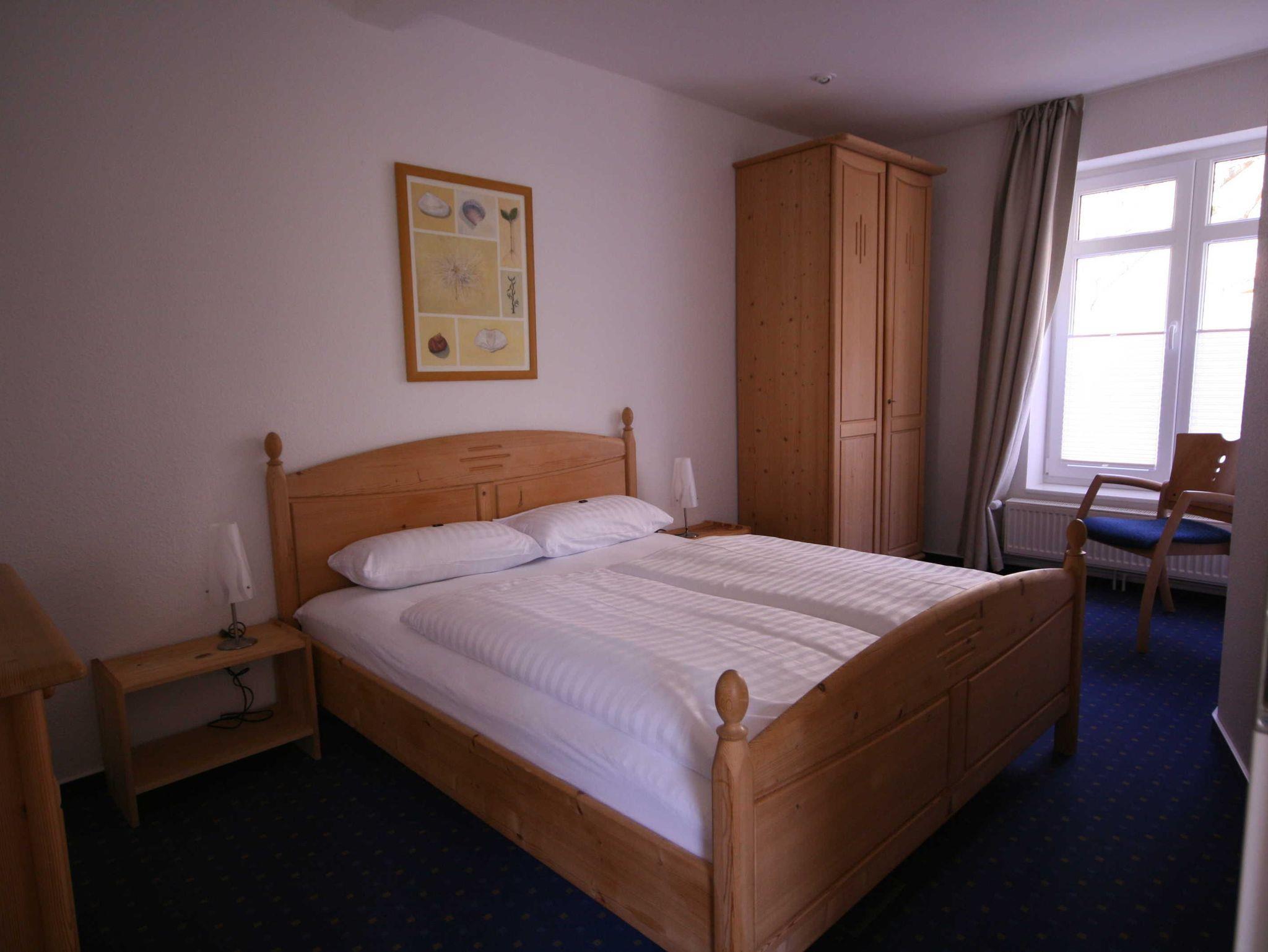 Ferienwohnung im EG / 56m² für bis zu 4 Personen mit Balkonterrasse, Wohn-/Essbereich, offene Küche ( 2-Platten-Ceranfeld, Spüle, Geschirrspüler, Kühlschrank, Gefriermöglichkeit, Mikrowelle, Kaffeemaschine, Toaster ) , 2 Schlafzimmer, Dusche/WC. Von der Ferienwohnung sind es nur wenige Meter bis zur Badestelle.