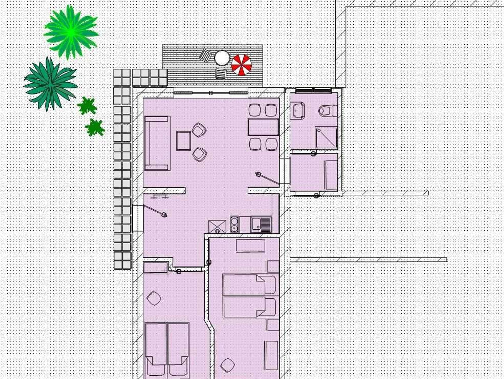 Auf der Terrasse mit Südausrichtung finden Sie neben Gartenstühlen, Tisch und Sonnenschirm 2 Relaxliegen. Wenn Sie möchten, können Sie aber auch die Gartenliegen direkt am See oder auf den zwei Seeplattformen zum Sonnenbaden nutzen.