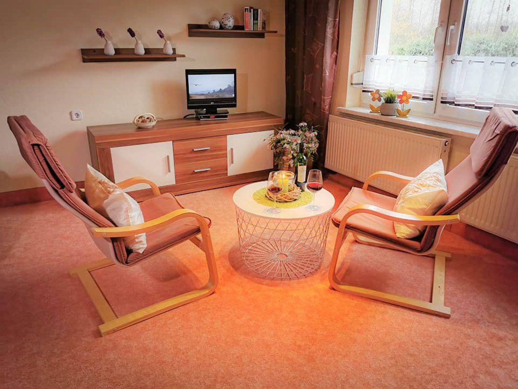 In einem weiteren behaglich eingerichteten Wohn-Schlafzimmer finden zwei Personen ausreichend Platz. Beide Zimmer sind mit SAT-TV ausgestattet. Kleinkinderbett und Hochstuhl stellen wir gern auf Wunsch zur Verfügung.