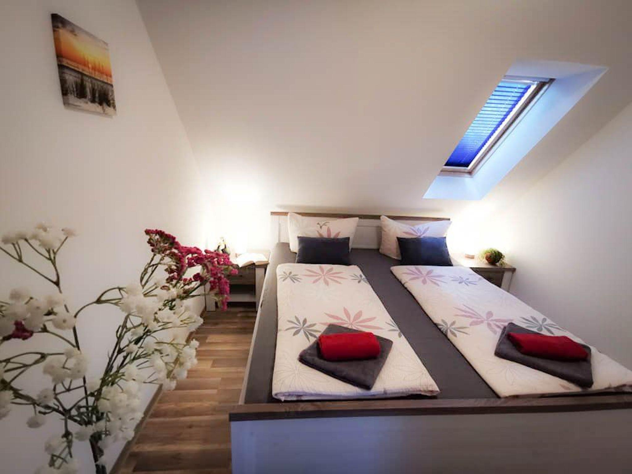 Zusätzlich bieten wir 2 Fereinwohnungen im OG unseres Hauses an. Diese wurden 2019 fertiggestellt und bieten jeweils Platz für 3 Personen. Gern können Sie telefonisch weitere Details dazu erfragen.
