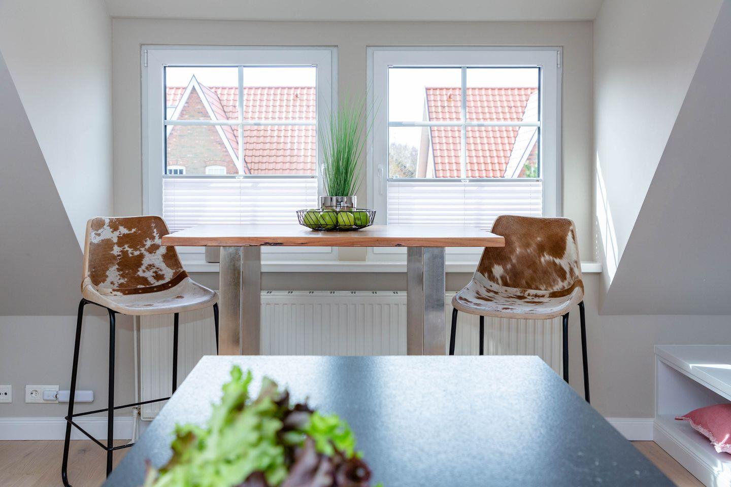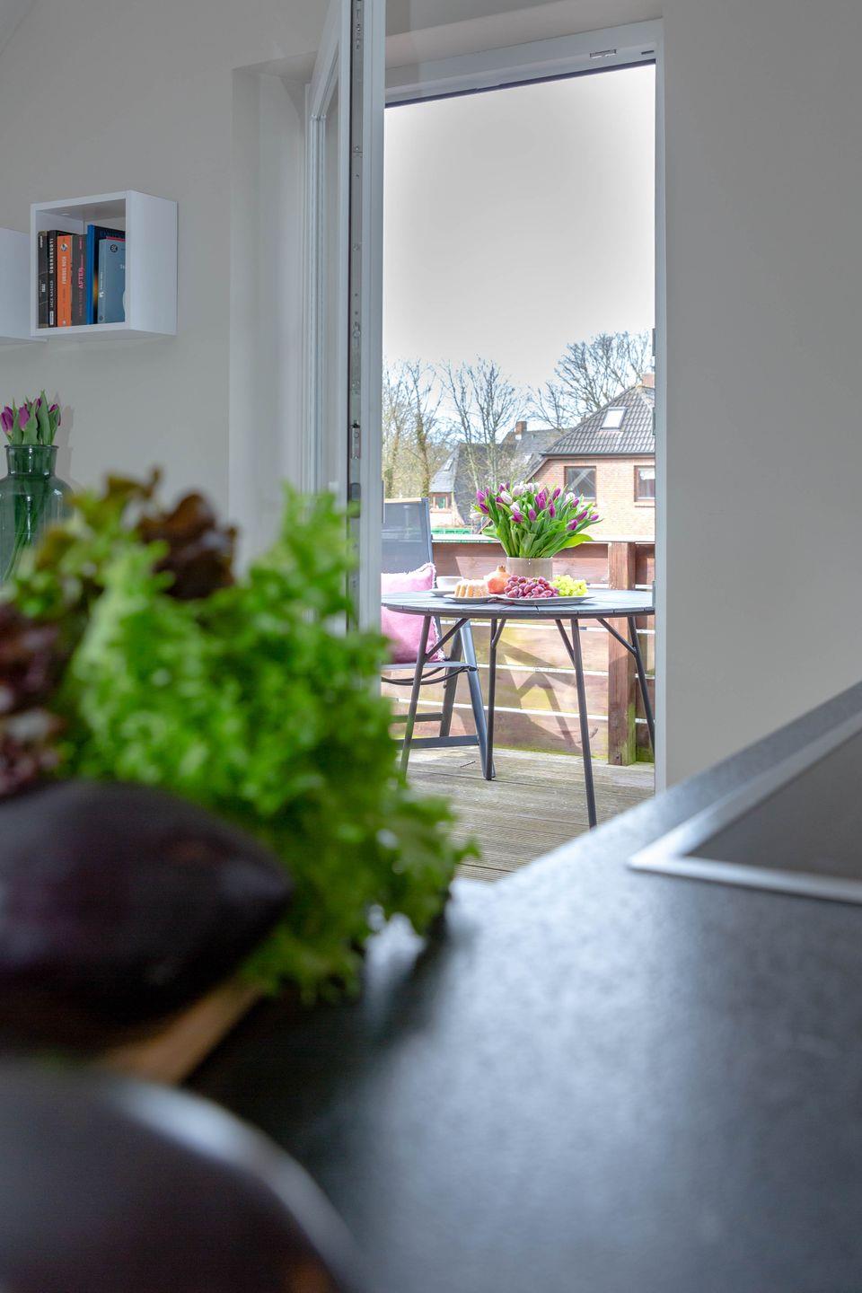 Die Wohnung verfügt über eine großzügige Dachterrasse mit Süd-Westausrichtung. Entspanntes Sonnen und abendliche Sonnenuntergänge genießen Sie bequem von hier aus.