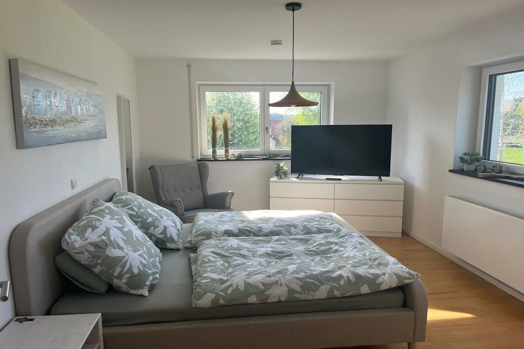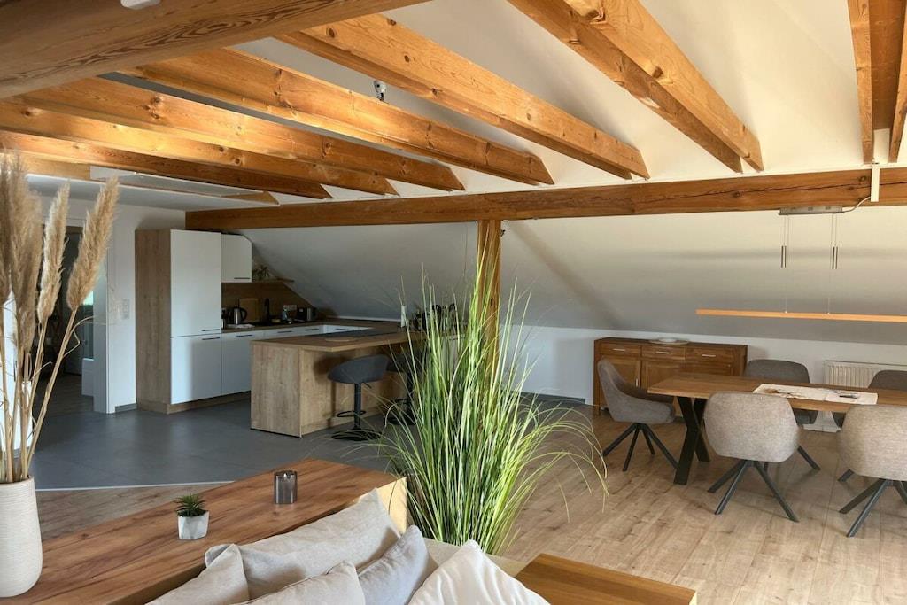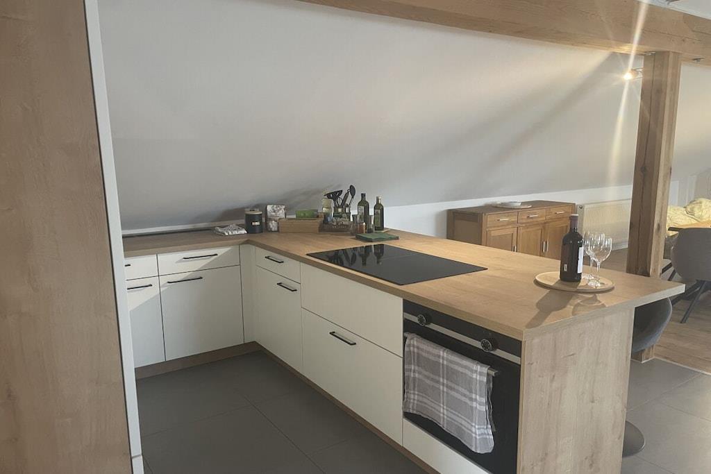 En oase af ro i naturen! To rummelige ferielejligheder, en med 2 senge og den anden med 4. To fuldt udstyrede, helt nye køkkener. Kaffemaskine, elkedel, brødrister, krydderier osv. – alt hvad du behøver til din ankomst er inkluderet. Vandreture er mulige. Kom og se selv! Ladestation til elbiler tilgængelig.