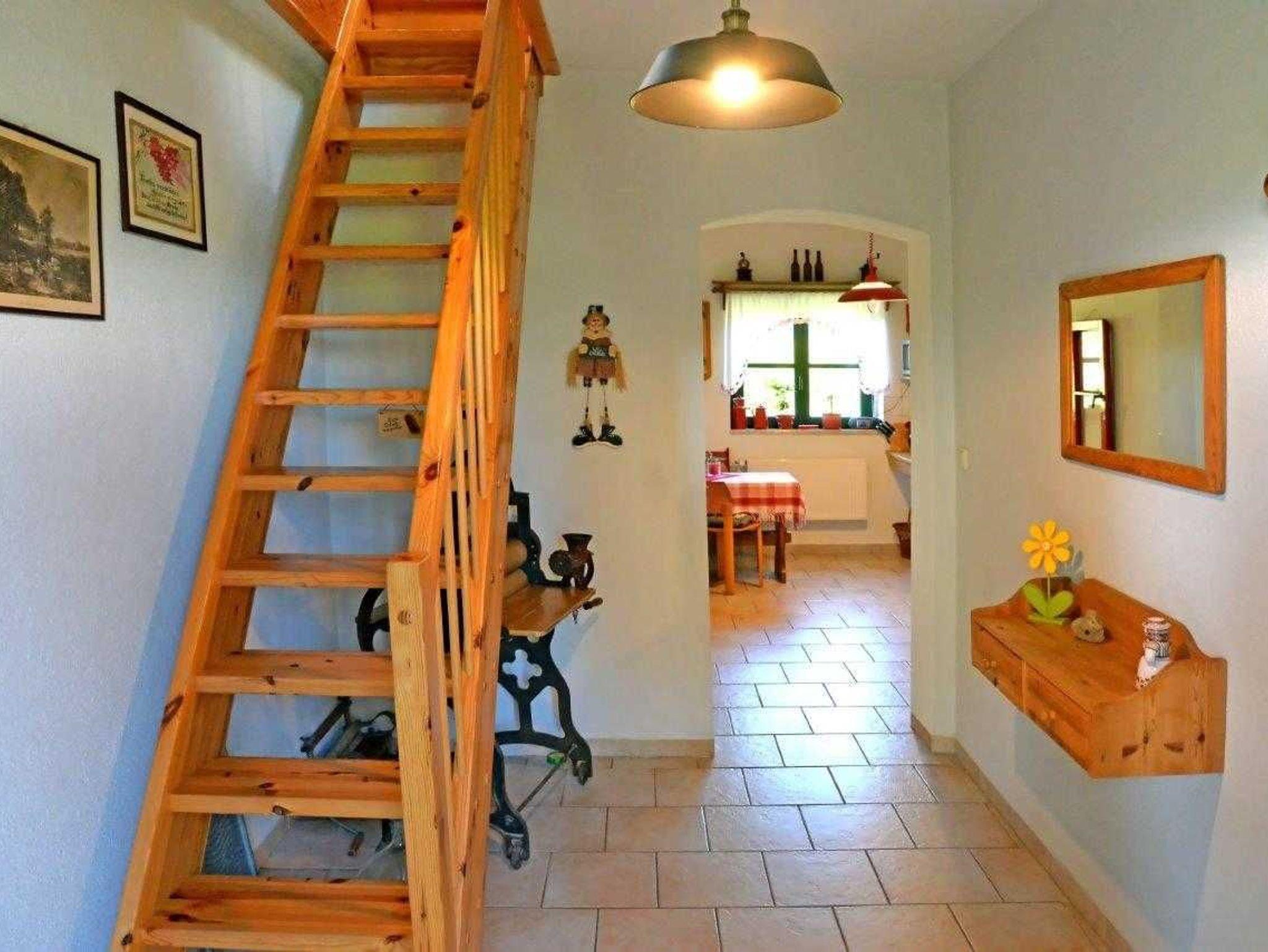 Die ca. 60m² große Ferienwohnung ist in 2 Etagen aufgeteilt und bietet ein gemütliches, komfortables und ländliches Ambiente. Wohn- und Schlafbereich befinden sich in der oberen Etage, Küche und Bad mit Dusche im Erdgeschoss. Ihr Feriendomizil hat Sat-TV, Radio, Terrasse, Grill und einen PKW Stellplatz am Haus.