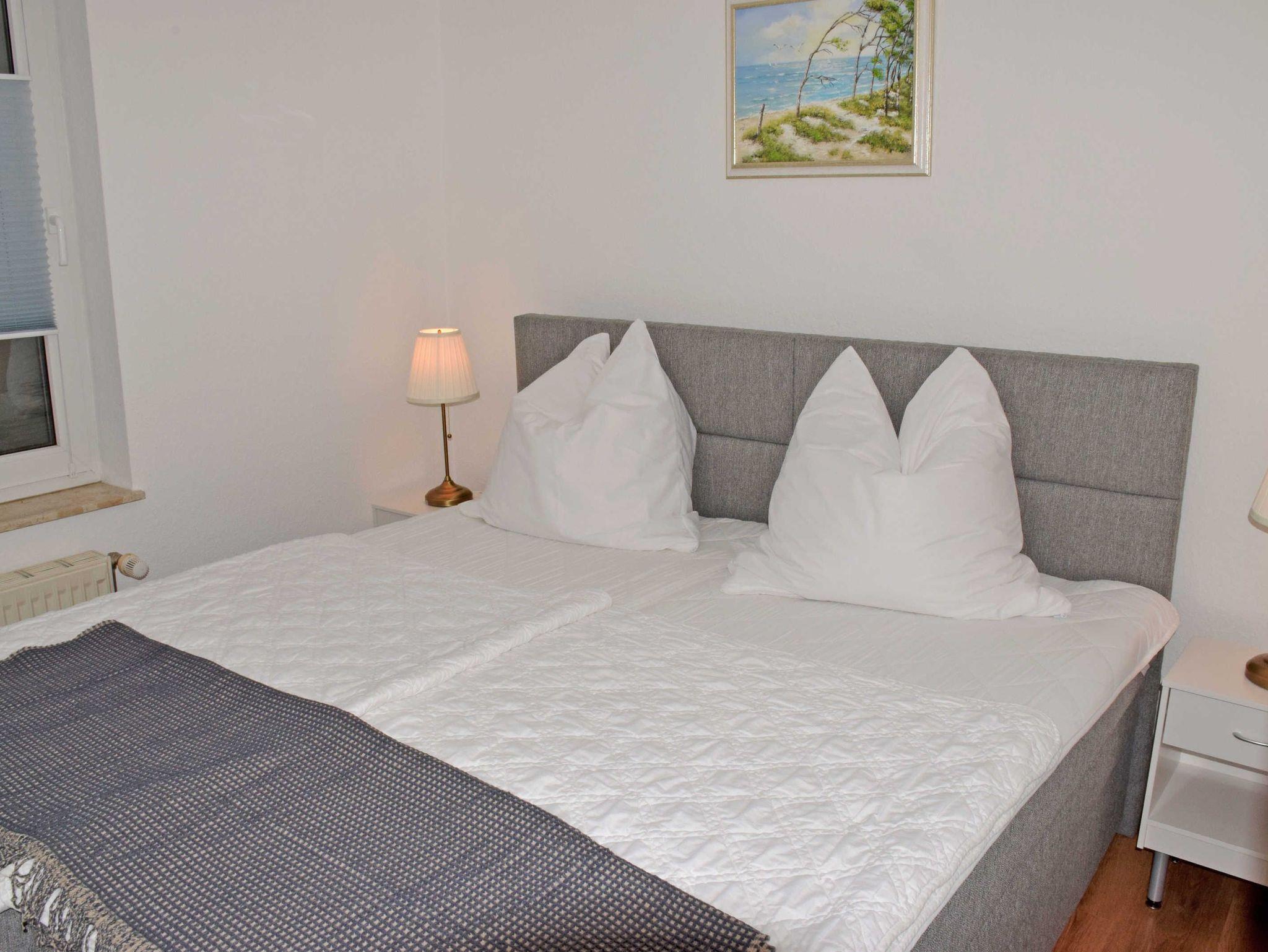 Das Schlafzimmer verfügt über ein bequemes Doppelbett mit Nachttischen und Leselampen sowie einen Kleiderschrank. Das helle Bad bietet eine Dusche, Waschtisch und WC, es verfügt über Tageslicht. Bei Ihrer Anreise sind die Betten bereits mit Bettwäsche bezogen. Handtücher können Sie selbst mitbrungen oder gegen Aufpreis zubuchen.