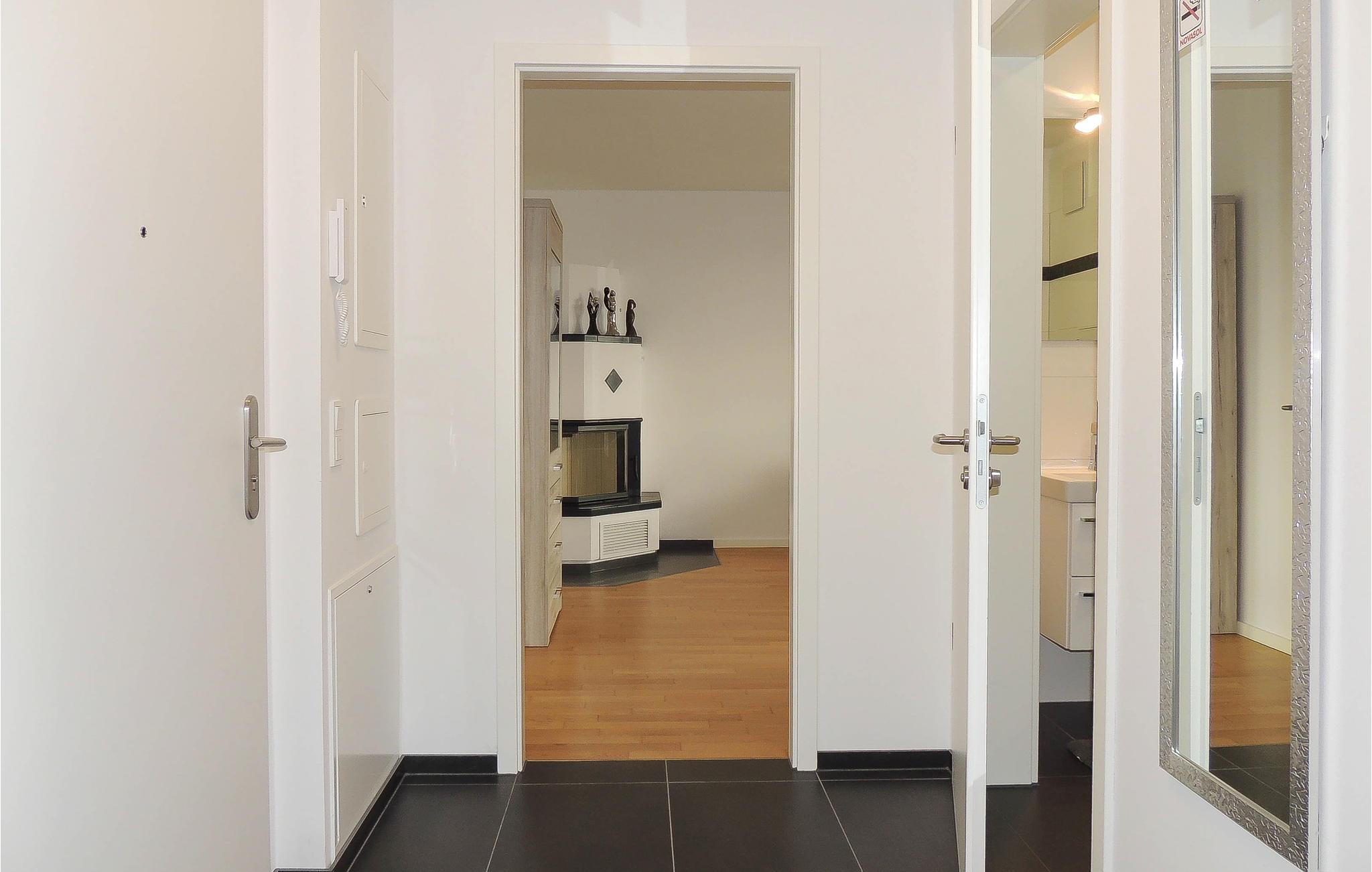 Lejligheden er komfortabelt indrettet. I den kolde årstid kan I tænde op i kaminen i stuen og nyde varmen mens I slappe af i den store hjørnesofa.