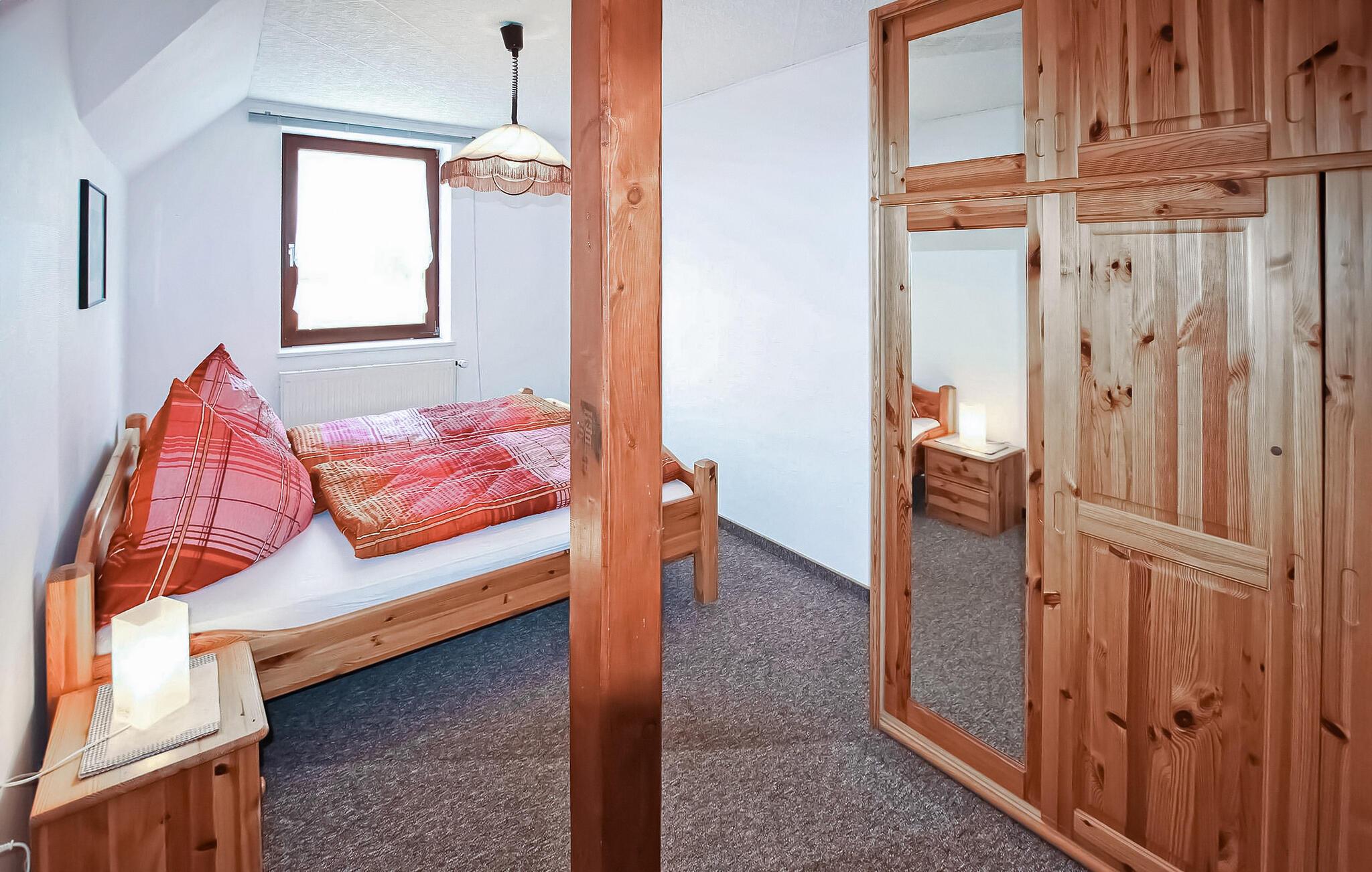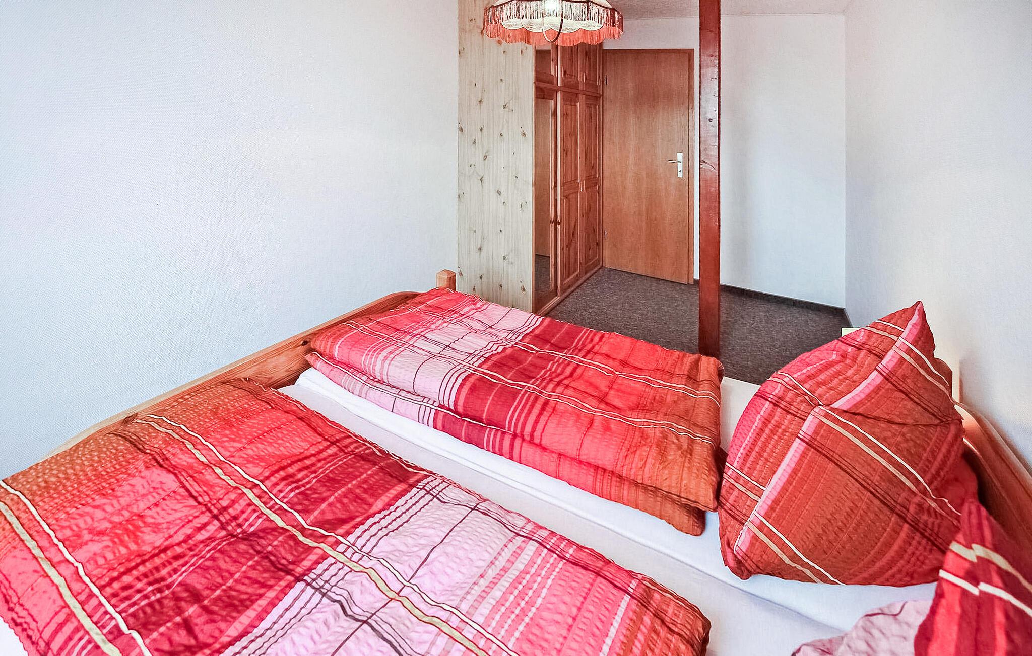 Der er tale om den ene af to ferielejligheder (renoveret i 2017 og 2018), som er beliggende på øverste etage i en beboelsesejendom på ejerens 1.700 kvm store boligejendom i et roligt villakvarter. En møbleret gang er til fælles brug som forværelse til ferielejlighederne. Der er desuden fælles udendørs opholdsområde, grill, parkeringsplads, forskellige legemuligheder (TT tallerken, gynge), tremmeseng og høj stol. Den centralt opvarmede lejlighed har opholdsstue (polstrede møbler, spiseplads, fladskærms-tv), soveværelse (dobbeltseng, ekstra seng), tekøkken på gangen (køleskab, kogeplader, diverse små køkkenmaskiner) og stort badeværelse med bl.a. bad/toilet. Sejlads og ridning er muligt efter aftale. Den samlede pris inkluderer slutrengøring, sengetøj, vand og energi. Medbring venligst dine egne håndklæder. Altenkirchen ligger på Wittow-halvøen i den nordlige del af øen. Østersøferiestedet Breege/Juliusruh med sit brede udbud af fritidsaktiviteter er ca.. Afstanden til den velkendte Kap Arkona er ca.2 km. 8 km væk. Der er restauranter, butikker og cykeludlejning i byen.