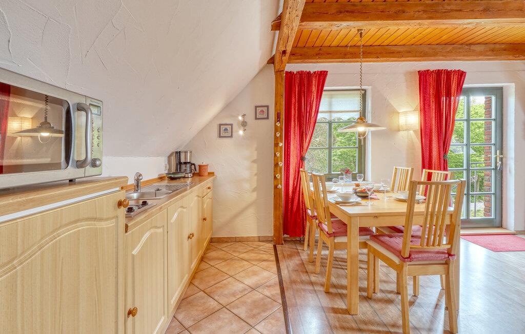 Ferielejligheden med separat adgang er beliggende på øverste etage i en beboelsesejendom på en stor naturgrund. Ejendommen ligger roligt, ugeneret i bydelen Gudderitz, ca 1 km fra Altenkirchen. Østersøstranden (Nonnevitz) kan nås efter ca. 3,5 km. Ferielejligheden er udstyret med: opholdsstue (polstrede møbler, tv, radio), åbent tekøkken (elkomfur, køleskab, mikroovn, diverse køkkenmaskiner, spiseplads), soveplads (dobbeltseng), aflåselig hems via stejle trapper ( 2 senge), bad/toilet, centralvarme. Der er et udendørs opholdsområde med grillplads og solbadningsområde, legeplads og parkeringsplads. Den samlede pris inkluderer slutrengøring, vand og energi. Sengelinned kan lejes på stedet efter anmodning; medbring venligst dine egne håndklæder. Betales på stedet: sengelinned (hvis forespurgt). Kæledyr er ikke tilladt i denne ejendom. Altenkirchen ligger på halvøen Wittow i den nordlige del af øen Rügen. Østersøferiestedet Breege/Juliusruh med dets brede udbud af fritidsaktiviteter er omkring 2 km væk, og den velkendte Kap Arkona er omkring 8 km væk. Der er restauranter, butikker og cykeludlejning i byen. Ferielejligheden ligger i bydelen Gudderitz, cirka 3,5 km fra Østersøen.