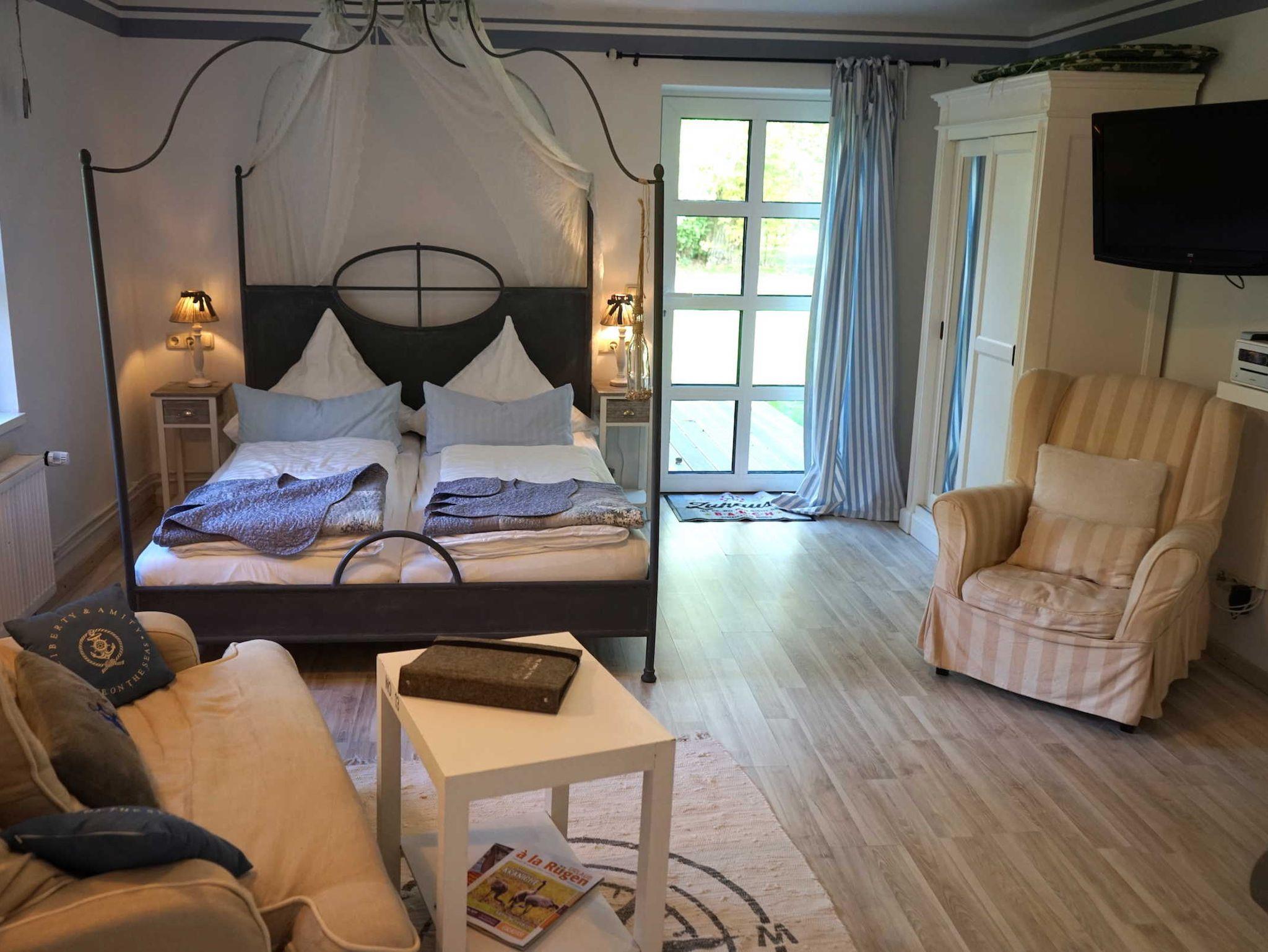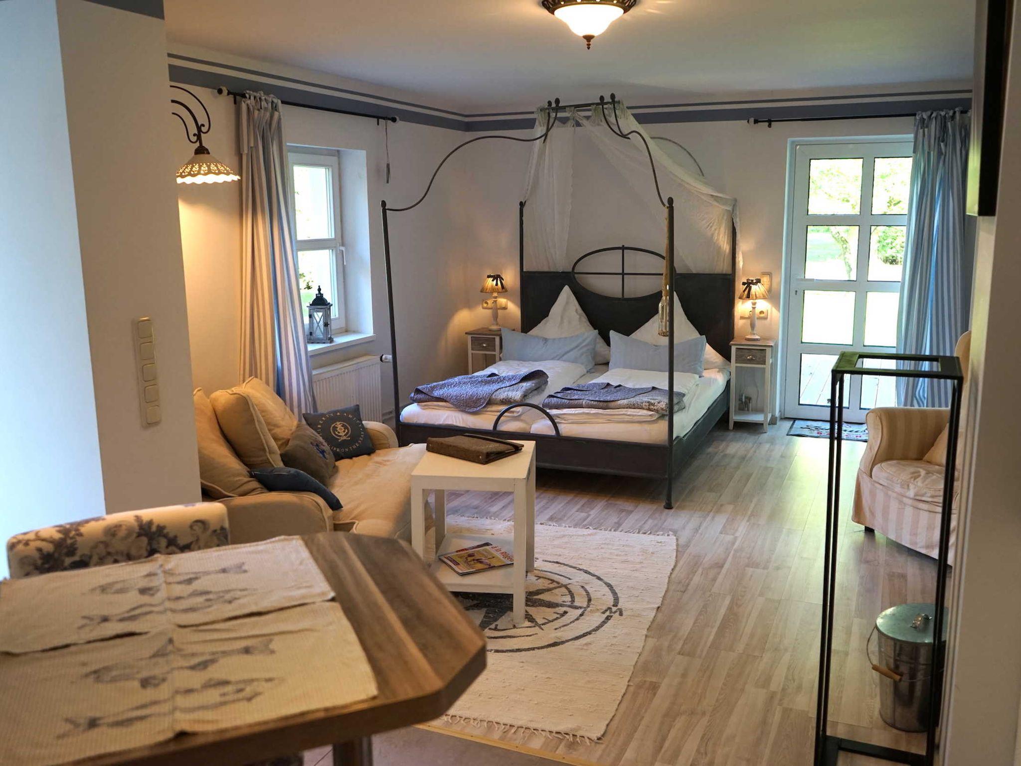 • kombinierter Wohn-/Schlafraum mit Kaminofen, Fernseher, Sat, Radio, WLAN, Doppelbett (160x200 cm)