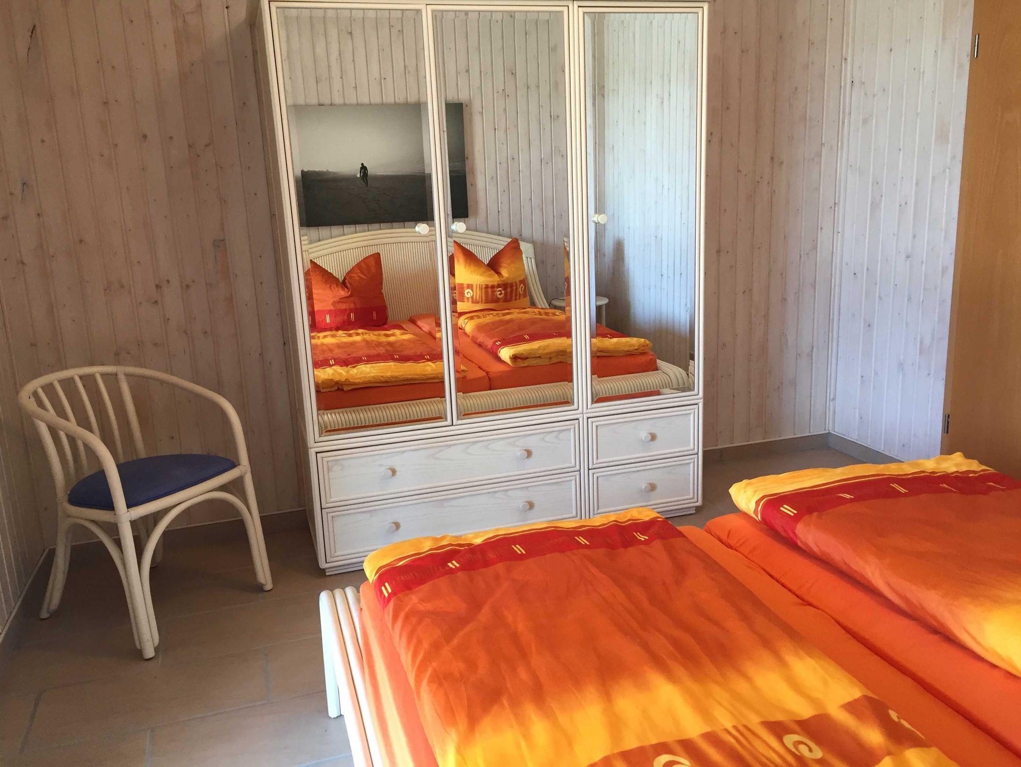 Die Ferienwohnung Star ist für max 6 Personen geeignet und befindet sich ebenerdig, ist 80 m² groß komfortabel und gemütlich ausgestattet: Flur, großer Wohn/ Essraum SAT TV mit Radioempfang, große Fensterfront mit Blick ins Grüne und Zugang zur großen Sonnenterasse mit Gartenmöbeln, und Grillmöglichkeit, eine komplett ausgestattete Einbauküche mit Herd, Cerankochfeld, Kühl-Gefrierkombination, Geschirrspüler, Mikrowelle, Kaffeemaschine für Filterkaffee und eine Tassimo Kaffemaschine, Toaster, Wasserkocher, Essecke, 1.Schlafzimmer mit Doppelbett, 2. Schlafzimmer mit Doppelstockbett, Bad mit Waschbecken Dusche und WC.
