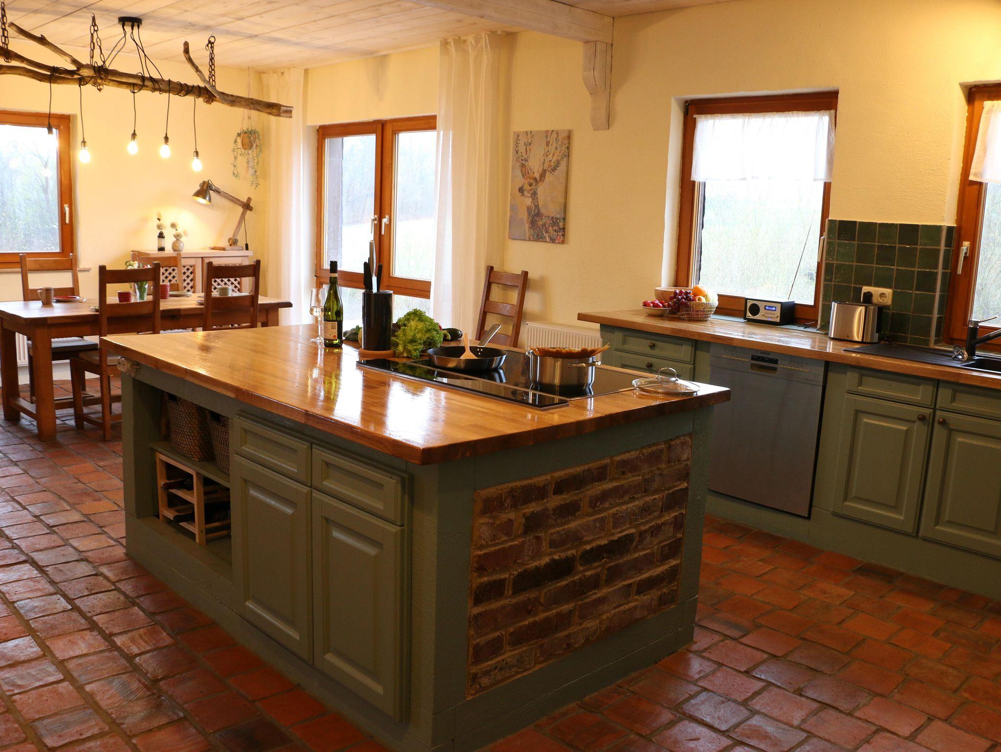Die vollständig ausgestattete und großzügig ausgelegte Küche lässt kaum Wünsche offen. Insbesondere die große Kochinsel bietet ausreichend Platz für Köche, Zuschauer, Tipgeber etc.