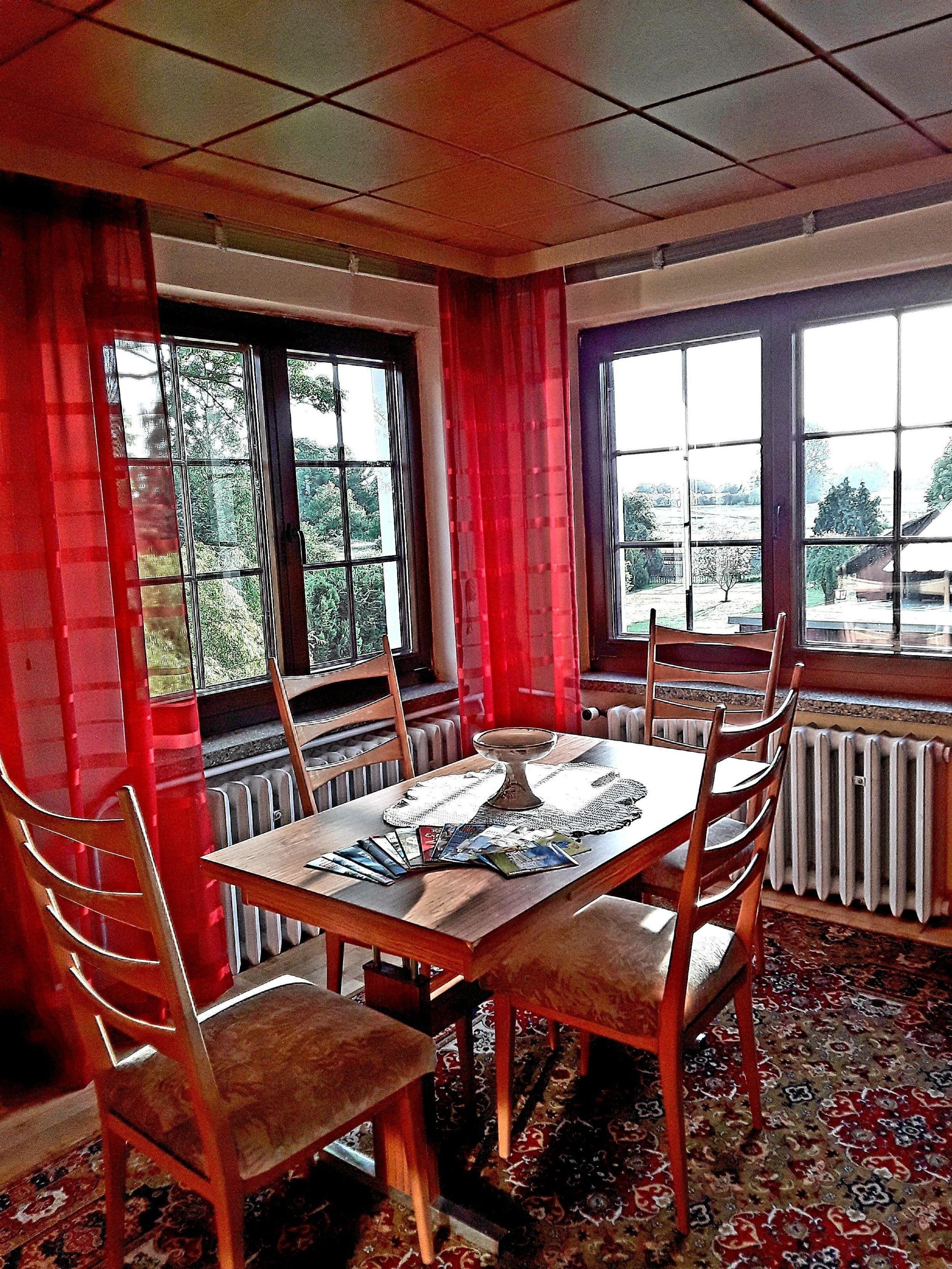 Die Ferienwohnung befindet sich im Obergeschoss des Wohnhauses der Familie Lalka. Sie verfügt über einen separaten Eingang, ein Wohnzimmer, zwei Schlafräume, eine Küche sowie Bad mit Dusche und WC. Eine gemütliche Sitzecke und Stellplätze für Autos bzw. Fahrräder sind auf dem Grundstück vorhanden