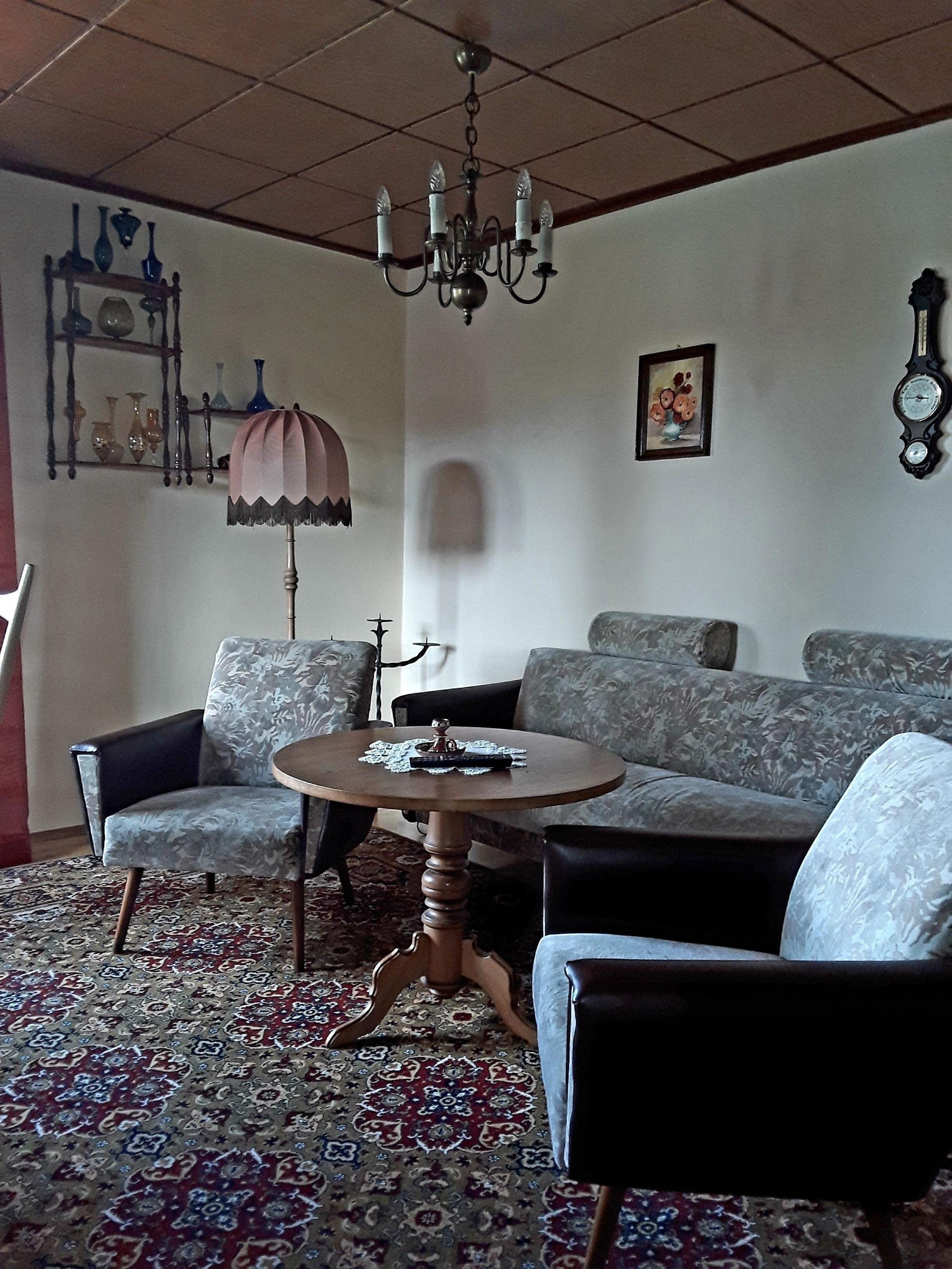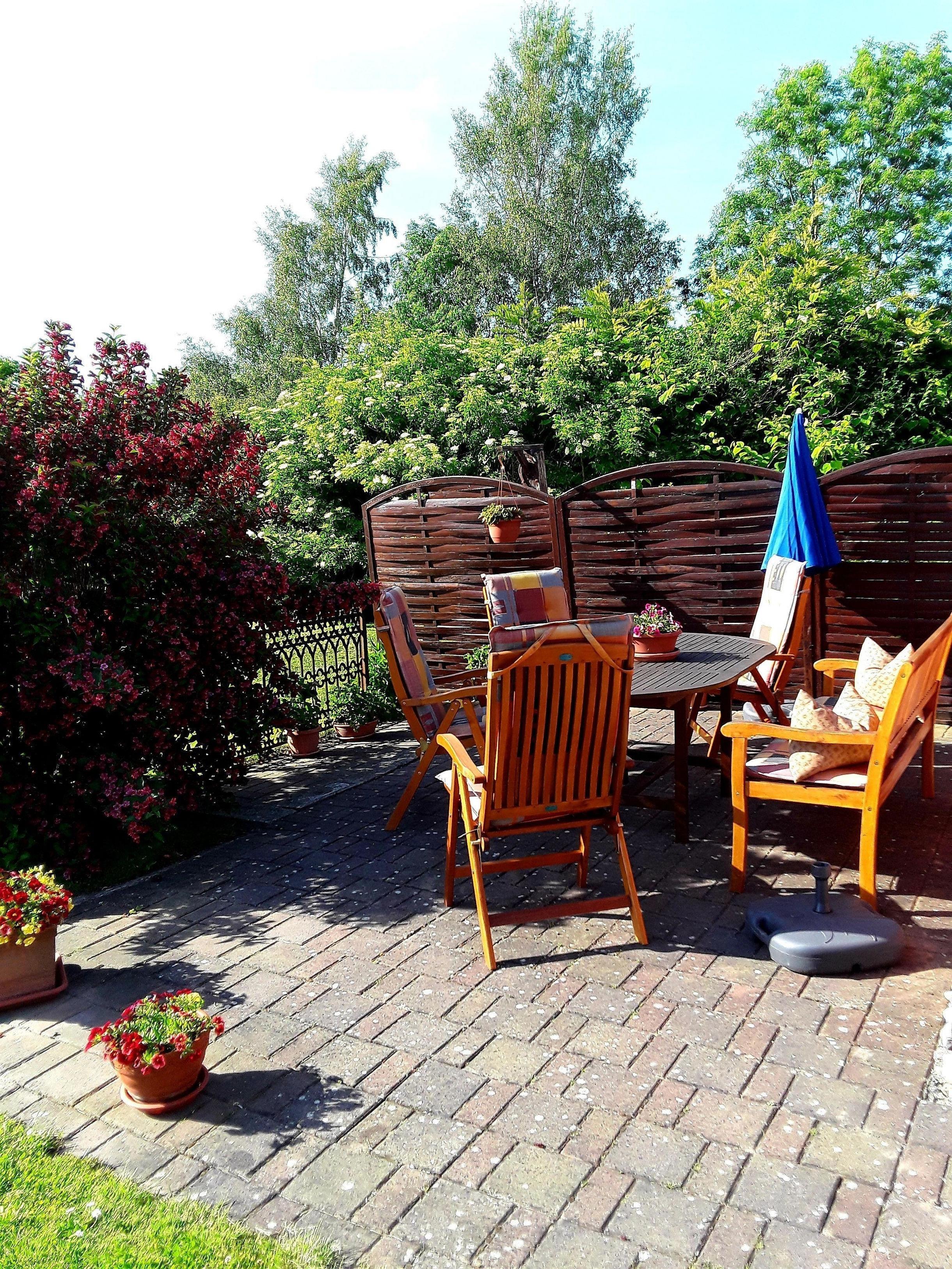 Die Fewo ist gemütlich eingerichtet mit TV, Radio, kompletter Küche mit Herd, Kaffeemaschine, Wasserkocher und Kühlschrank.