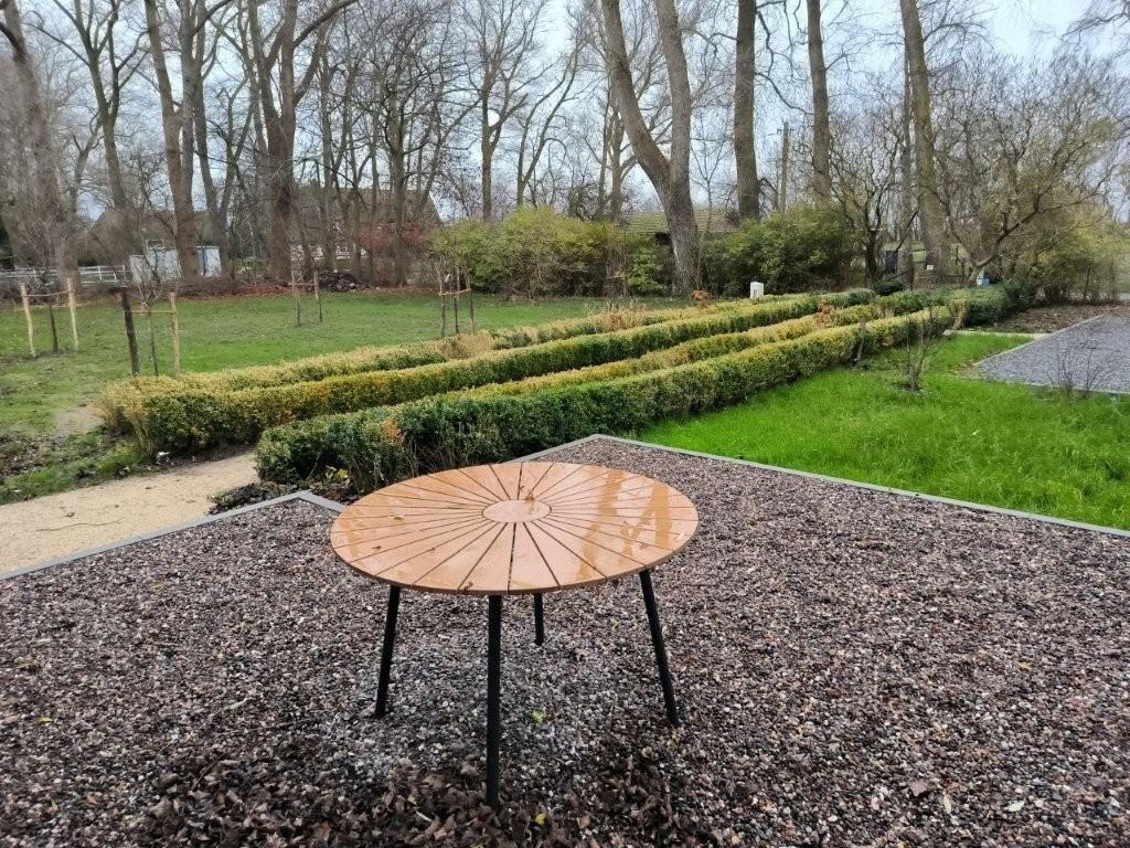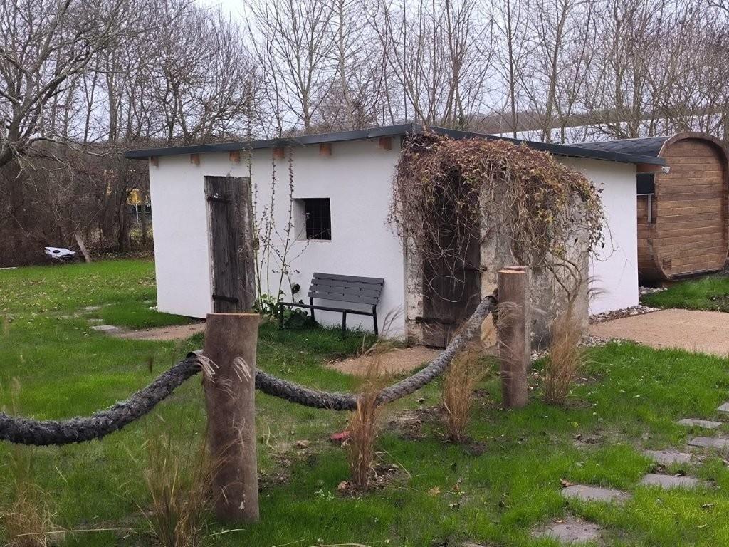 Im Außenbereich gibt es eine Faßsauna mit Entspannungsraum zur gemeinschaftlichen Nutzung. Es ist ein abschliesbarer Fahrradschuppen mit Stromanschluss vorhanden