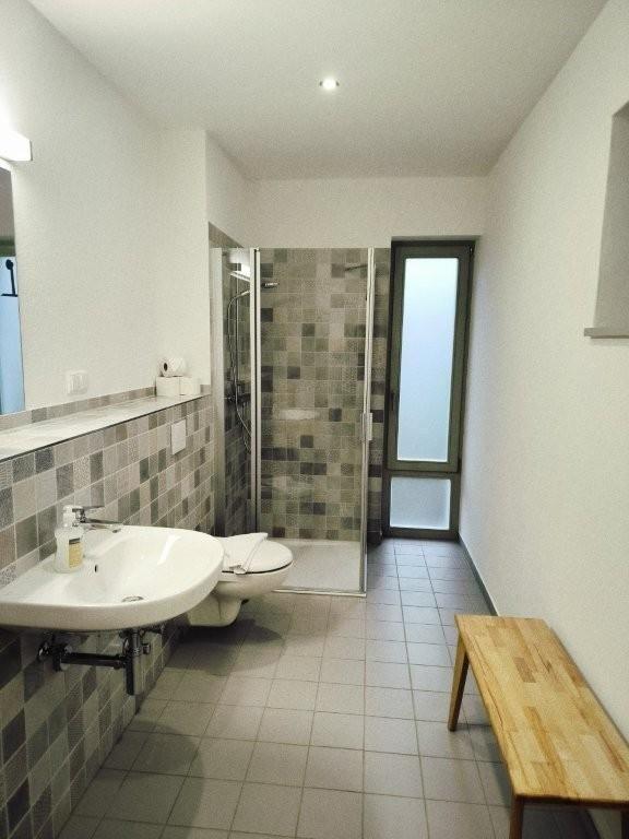 Das großzügige Badezimmer bietet eine bodentiefe Glasdusche, Waschbecken und WC. Außerdem gibt es noch ein zweites Badezimmer mit Dusche und WC.