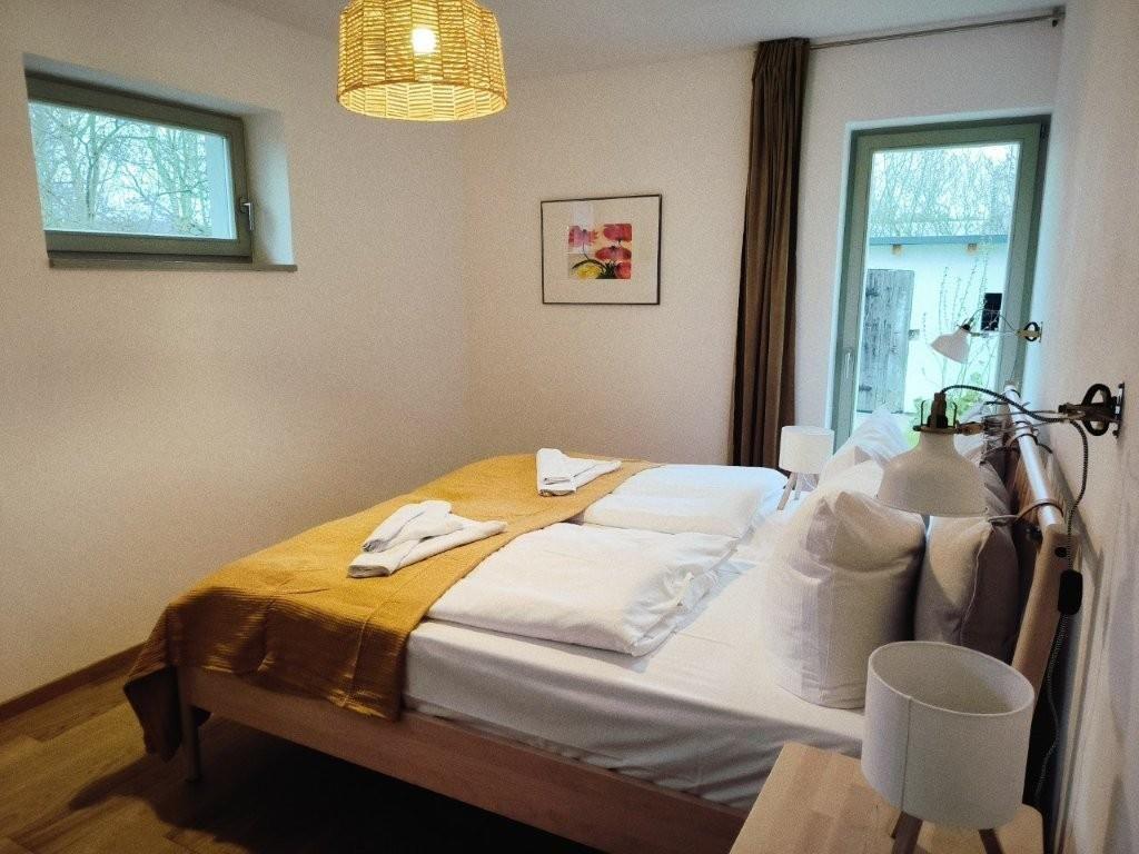 Beide Wohnungen wurden mit Naturmaterialien saniert: Zellulose - und Hanfdämmung, Lehmputz an den Innenwänden und Holzfussböden. Die Räume sowie die Aussenanlagen sind sehr grosszügig gestaltet, so daß auch im Winter Indoorulaubsfeeling garantiert ist