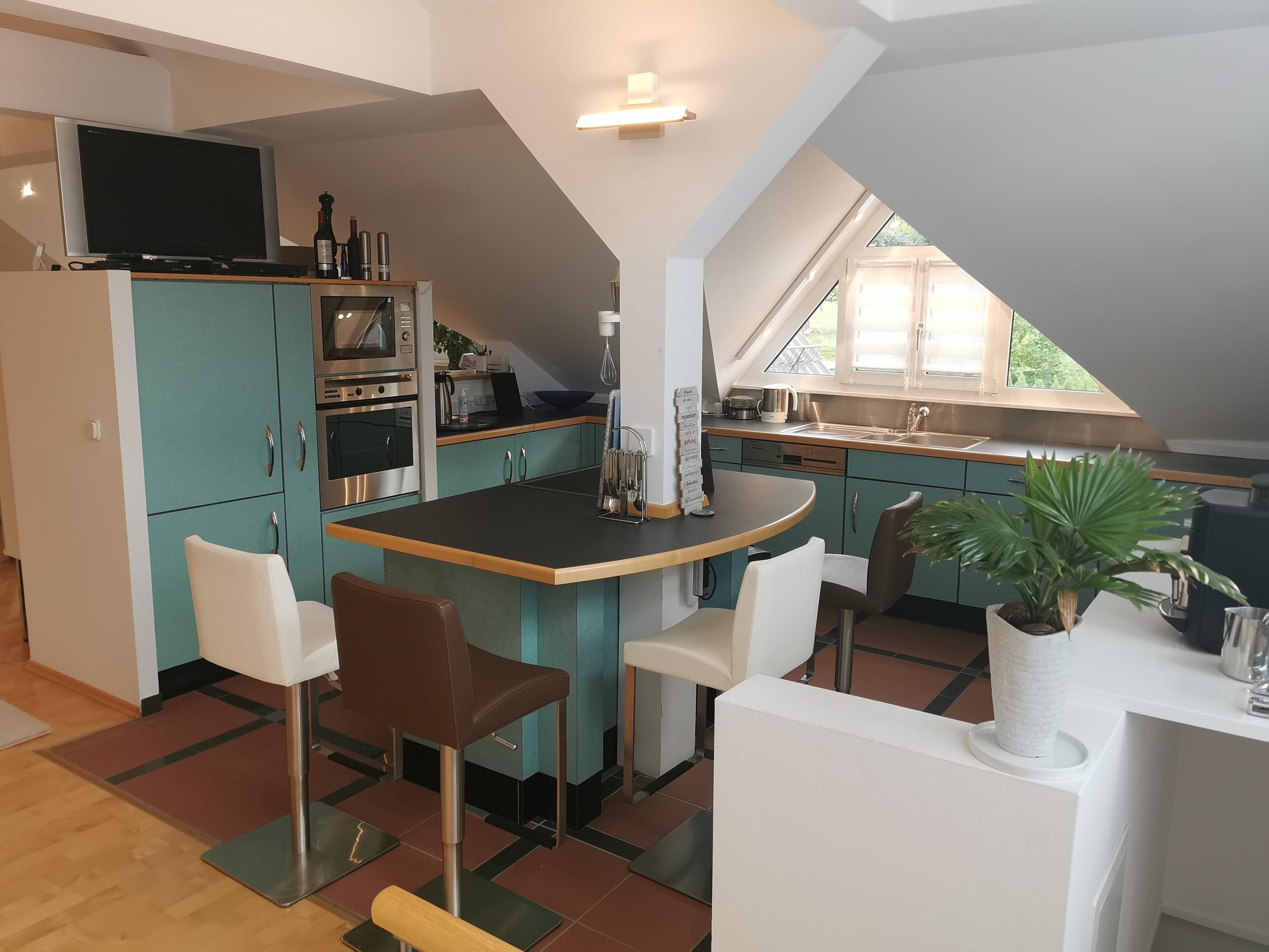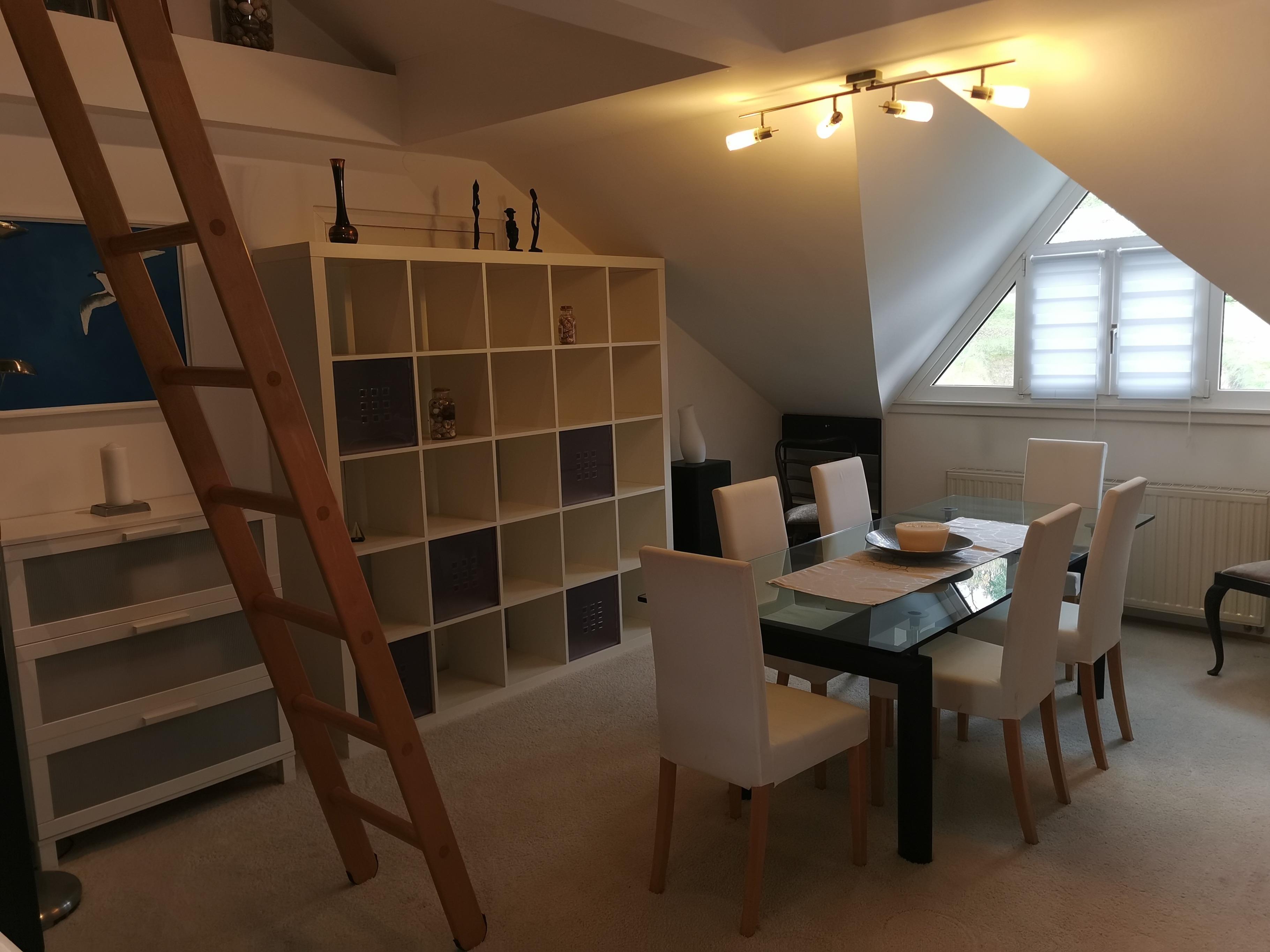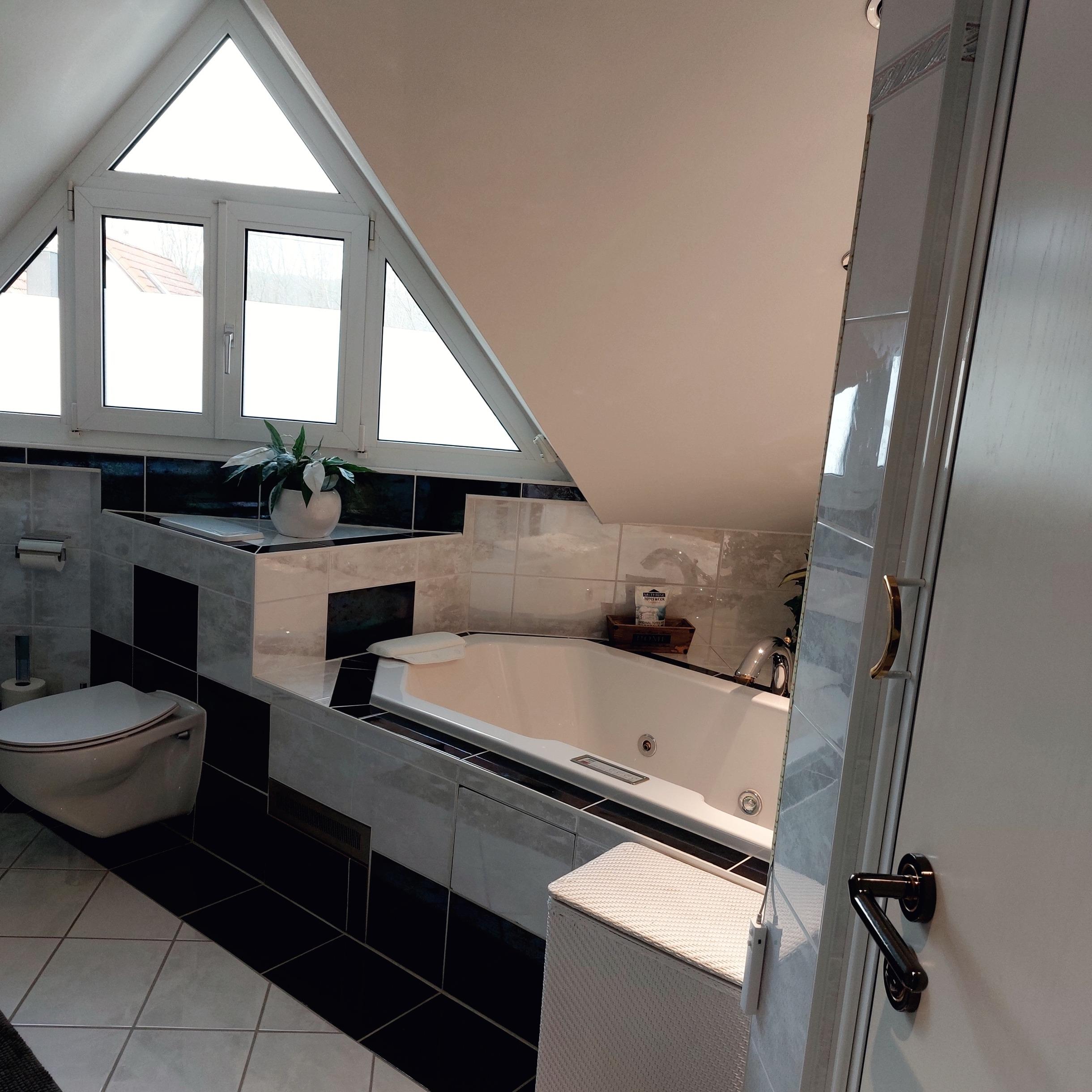Luxuriöse Ferienwohnung zum Entspannen und Genießen. Ferienwohnung / offene große Dachgeschosswohnung mit Balkon, Whirlpool, einem Außenpool mit Außendusche und Sonnenterrasse mit Grill und Garten.