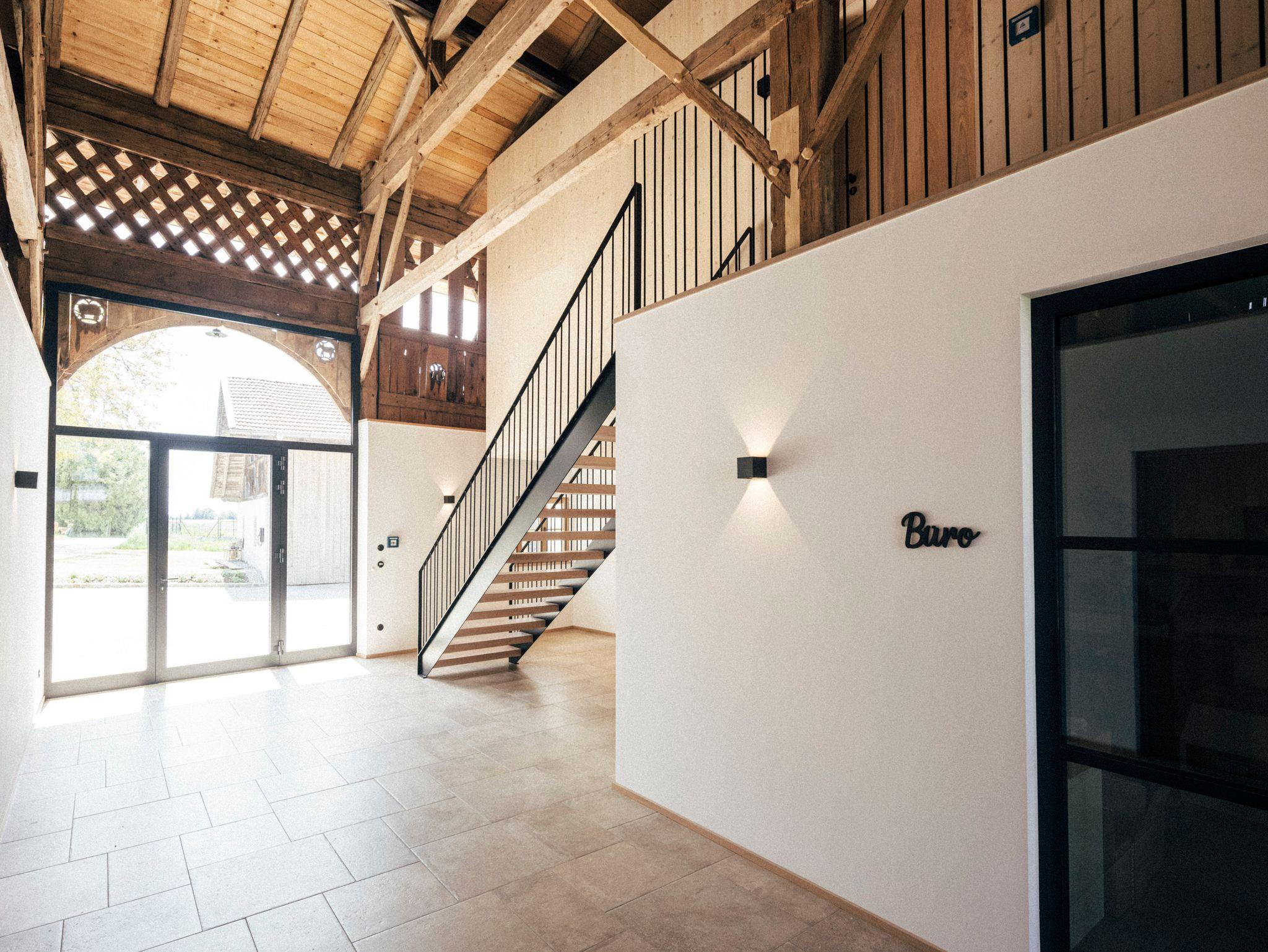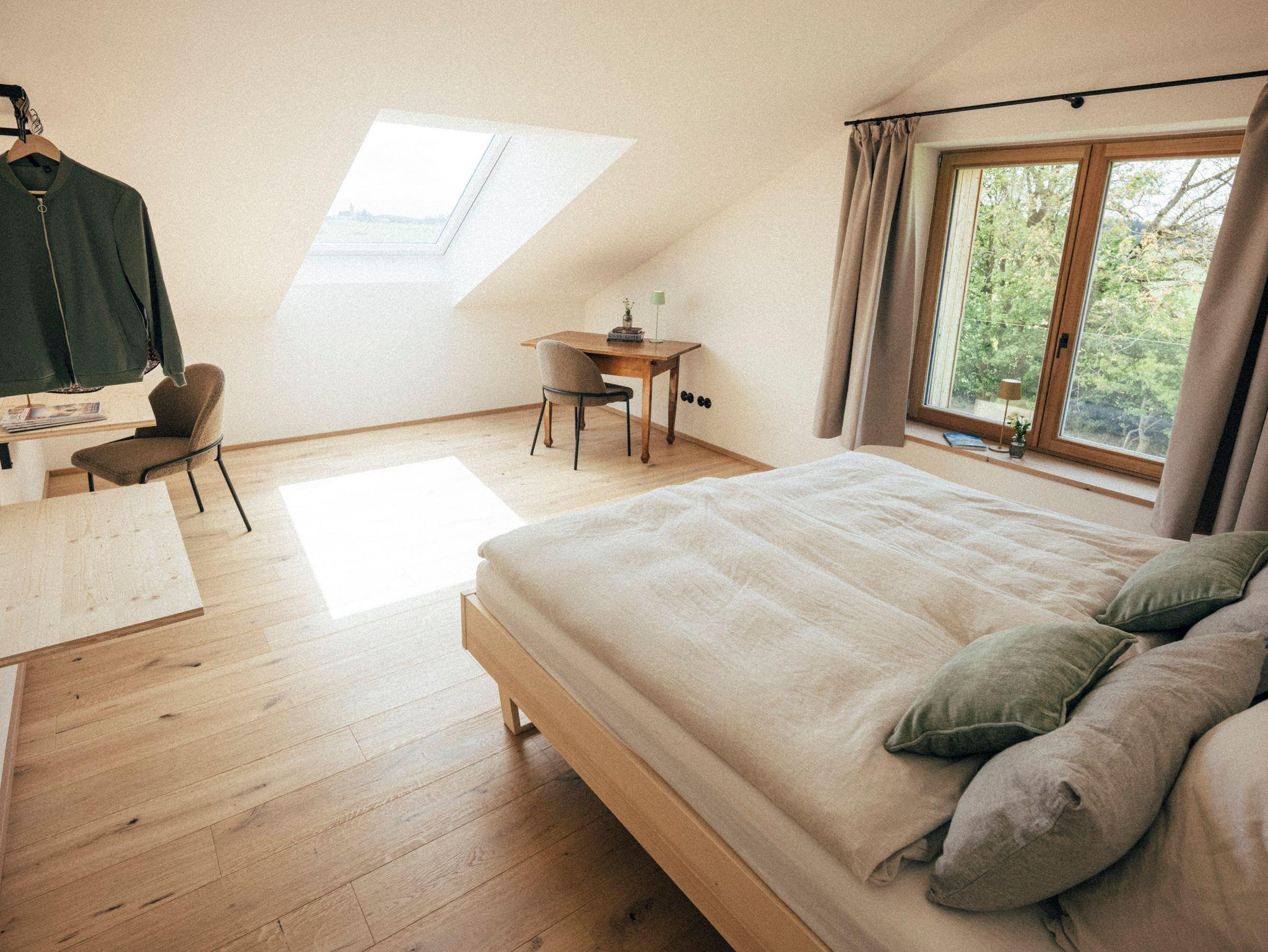 Wir haben ein ehemaliges Stallgebäude in zwei großzügige Haushälften mit Platz für je 10 Personen verwandelt. Im historischen Bundwerkstadel haben wir zwei moderne, gemütliche Wohnungen für je 4-5 personen untergebracht. Alle Wohnungen sind in Holzbauweise im Passivhausstandard in ökologischer Bauweise errichtet.