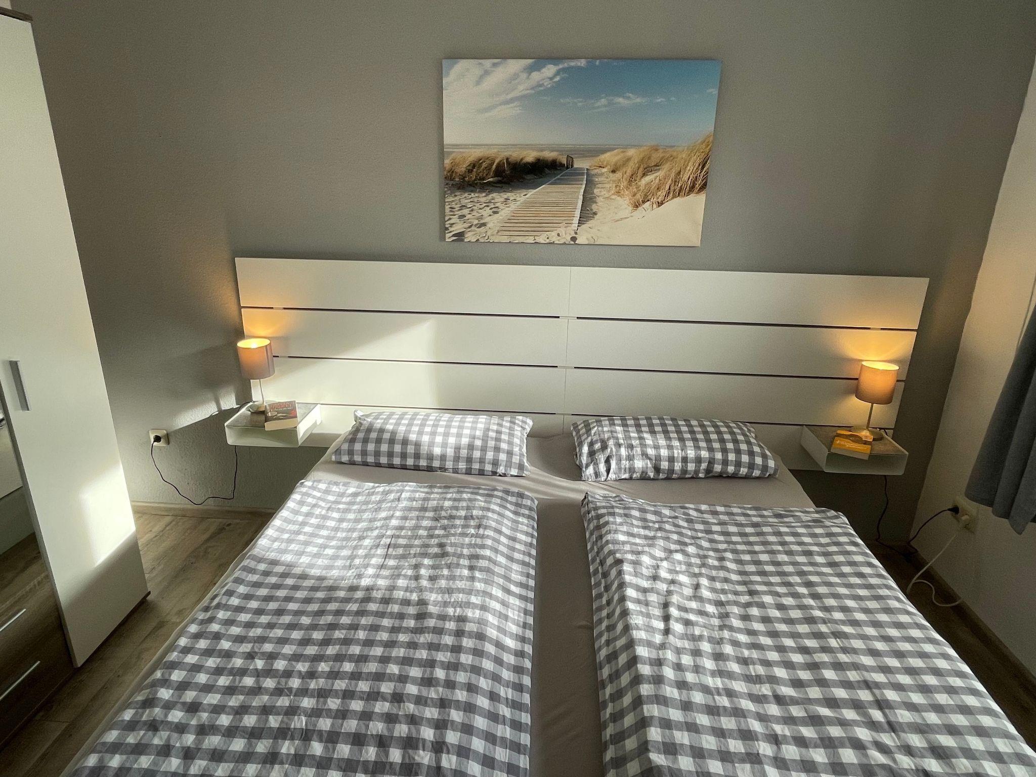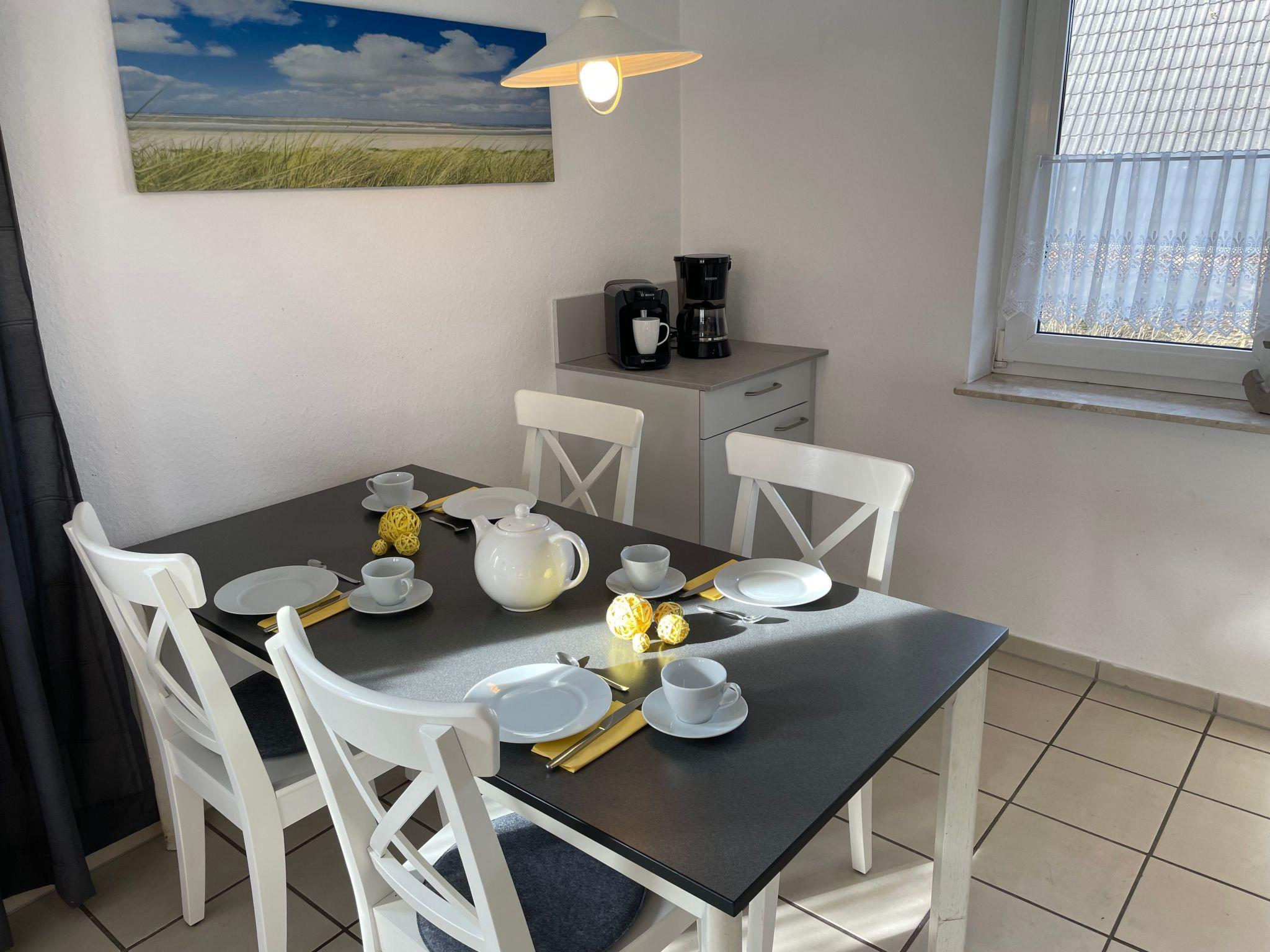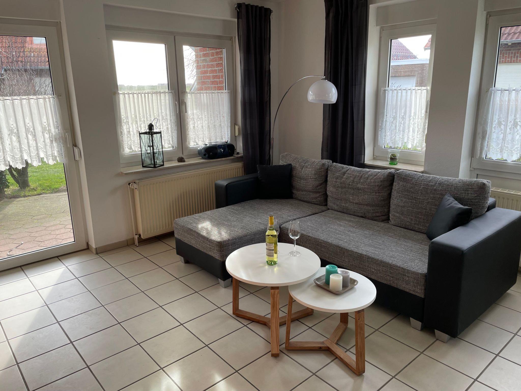 The holiday flat is located on the ground floor of a quiet house with four holiday flats at Kurpromenade 8, a quiet cul-de-sac not far from the maritime marina of Harlesiel. Within walking distance you can reach the beach (distance approx. 400 metres) and the Cliner spring (distance approx. 500 metres) The flat with separate entrance has a light-flooded living room with sofa set and satellite TV, dining area and modern, fully equipped kitchen (with dishwasher and microwave). A highlight of the flat is the sunny south-facing terrace with high-quality garden furniture and its own large garden, which also faces south. In addition to the master bedroom with a cosy double bed, the flat also has a small bedroom with a single bed. A brightly furnished shower room rounds off this well-equipped flat. The flat can be used by up to 4 people and a small child and has its own storage room for pushchairs, bicycles etc. Bed linen and towels must be brought by the tenant and WLAN is available to guests free of chargeShort descriptionOther : Non-smoking houseShort description 1Number of kitchens : 1