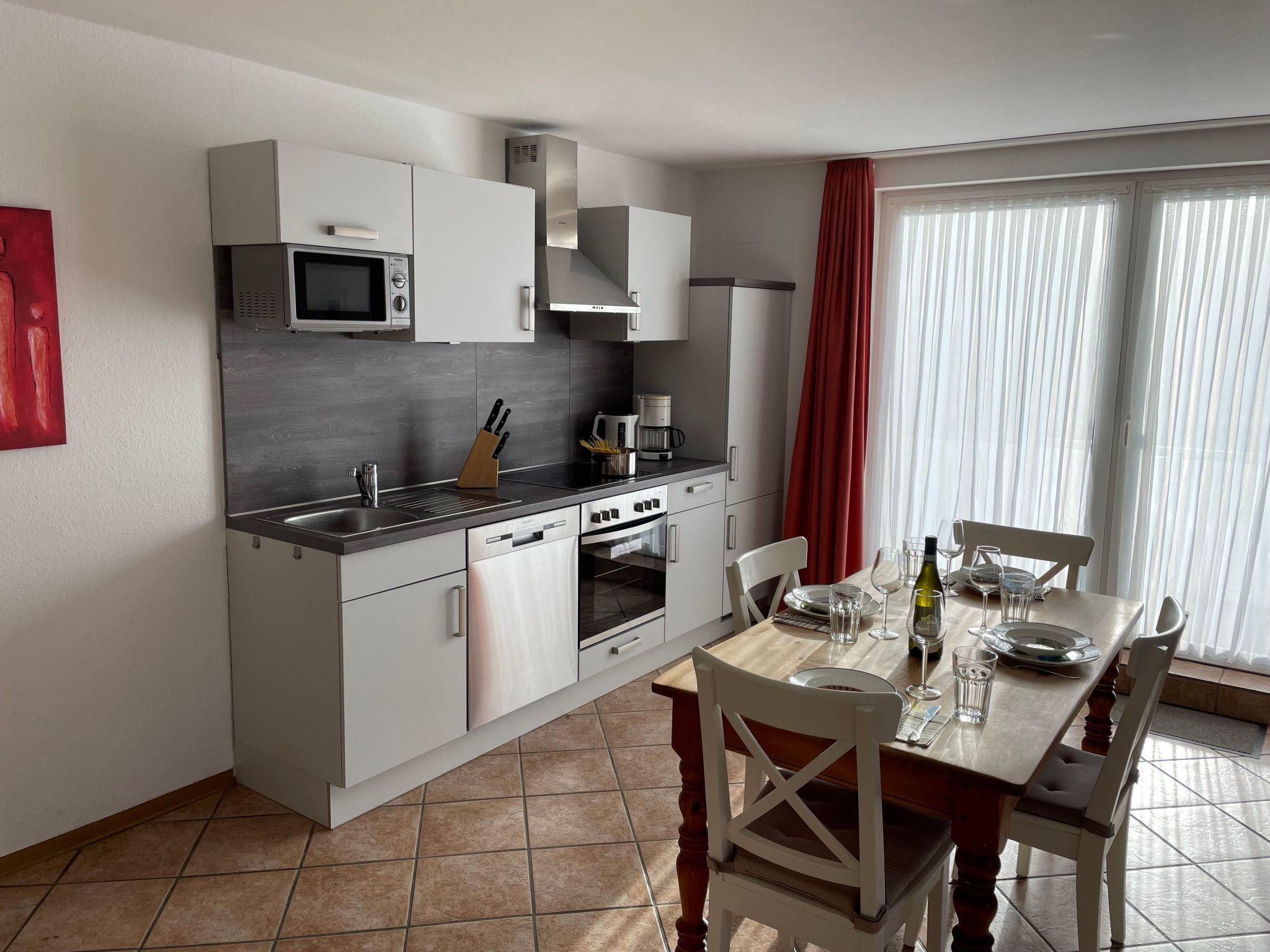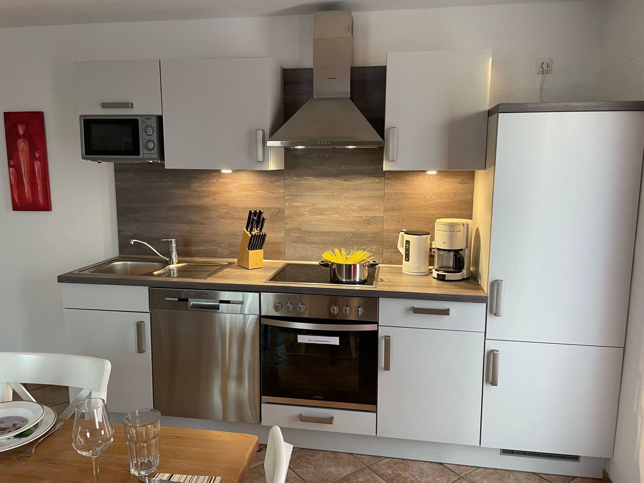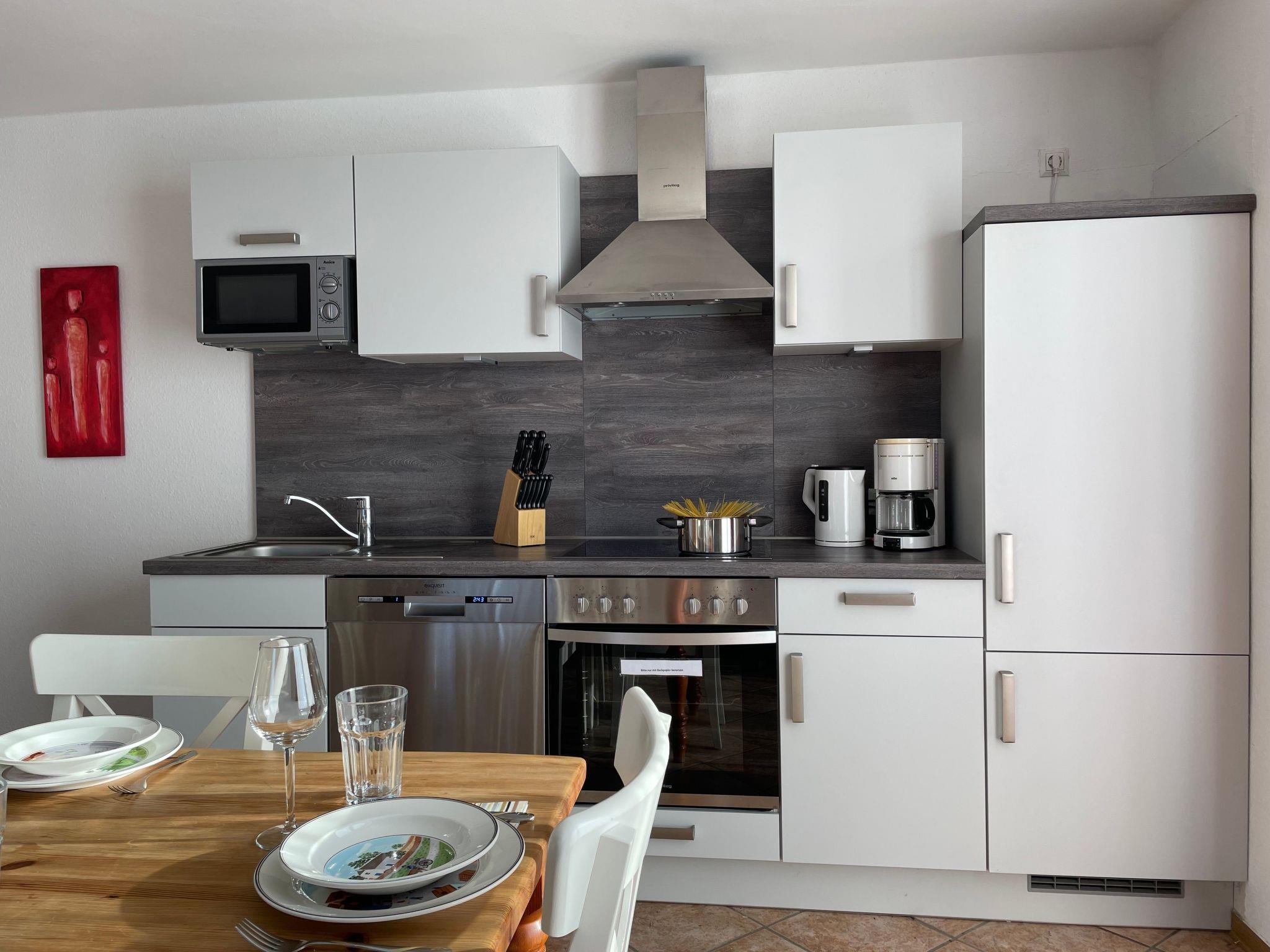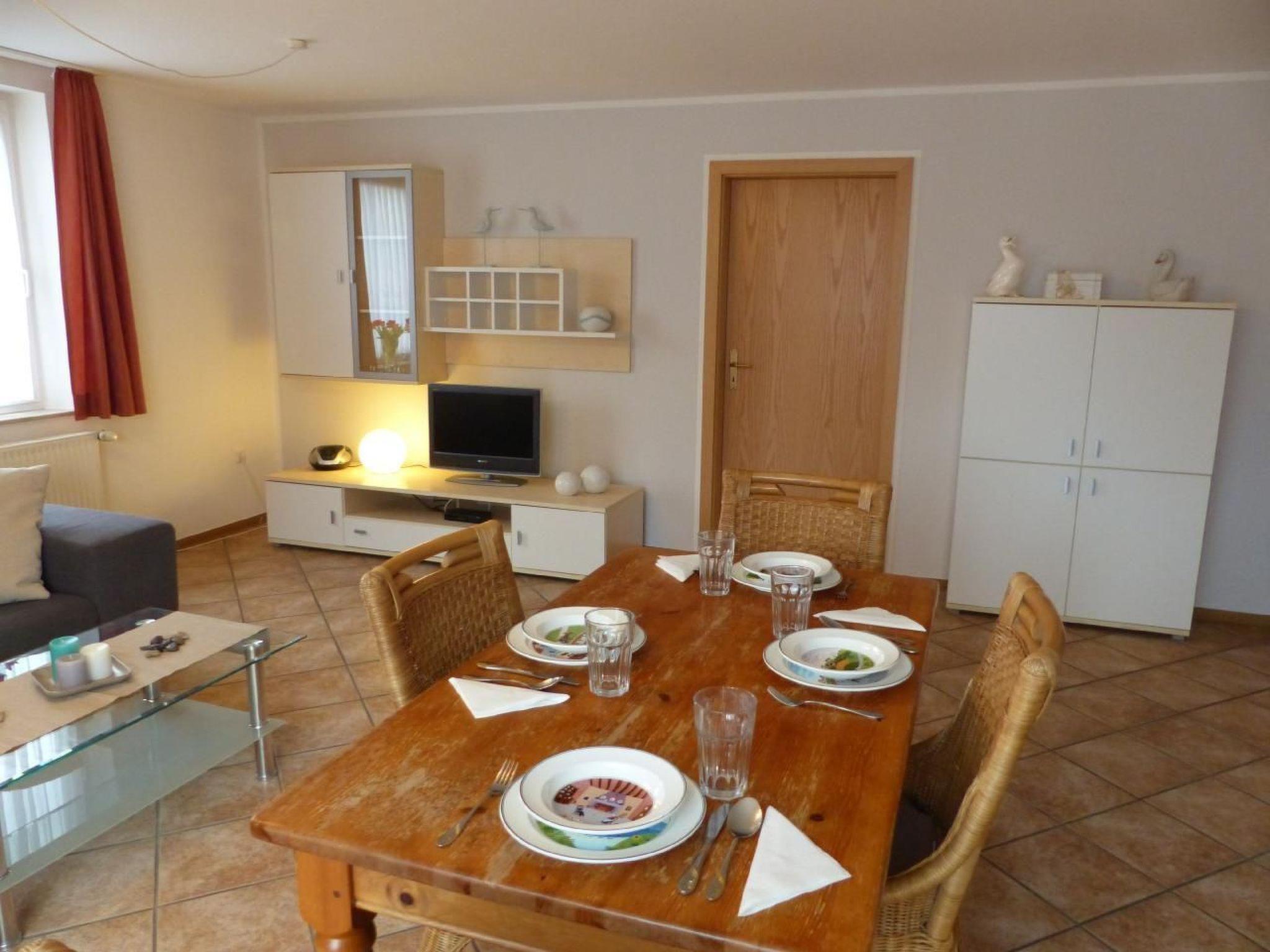 Modern, very tastefully and high-quality furnished holiday flat in a prime location in the North Sea resort of Carolinensiel for up to 4 people with a sunny balcony. The flat is in a quiet yet central location in Mühlenblick, close to the 'Cliner Quelle' spa centre, which you can easily reach on foot in just a few steps. The beach, the town centre and the Harle promenade are also within walking distance. The modern and tastefully furnished flat is located on the upper floor of our house "Mühlenblick" and has a bright living room with sofa area and large satellite TV, dining area and well-equipped kitchen (with microwave and dishwasher). The flat also has two bedrooms and a bright and modern shower room. The sunny balcony, accessible from the living room, invites you to relax and eat in the open air. A cot and high chair are of course available to our guests. A coin-operated washing machine and a storage room for bicycles, prams etc. are available in the house. There is a car parking space on the property. The flat can be used by up to 4 people and a small child. non-smoking house