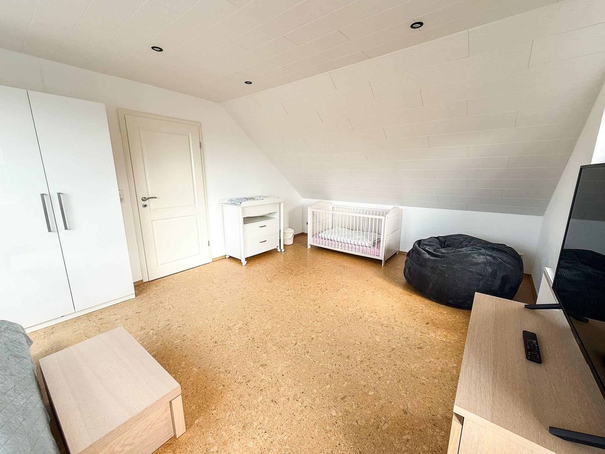 Top floor: Two further bedrooms with double beds. One of the rooms is particularly family-friendly and has a baby cot, a changing table with integrated baby bath - perfect for families with small children