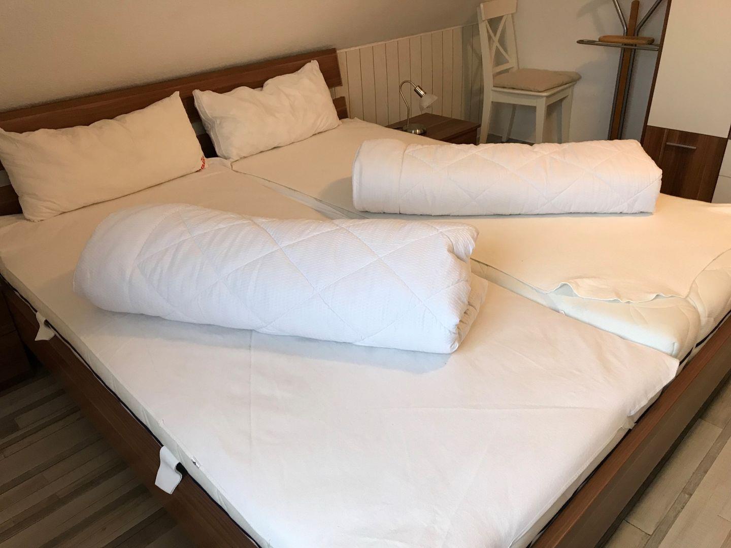 1 Schlafzimmer mit 3 Einzelbetten, zustellbares Kinderreisebett