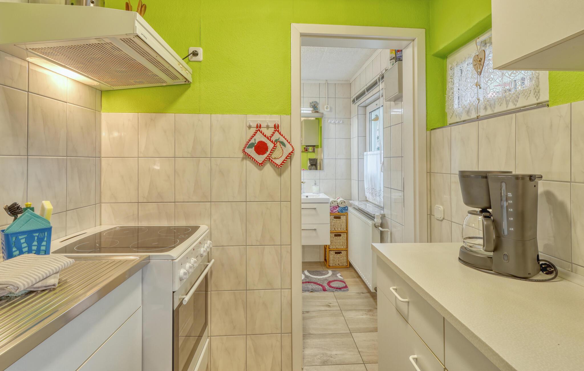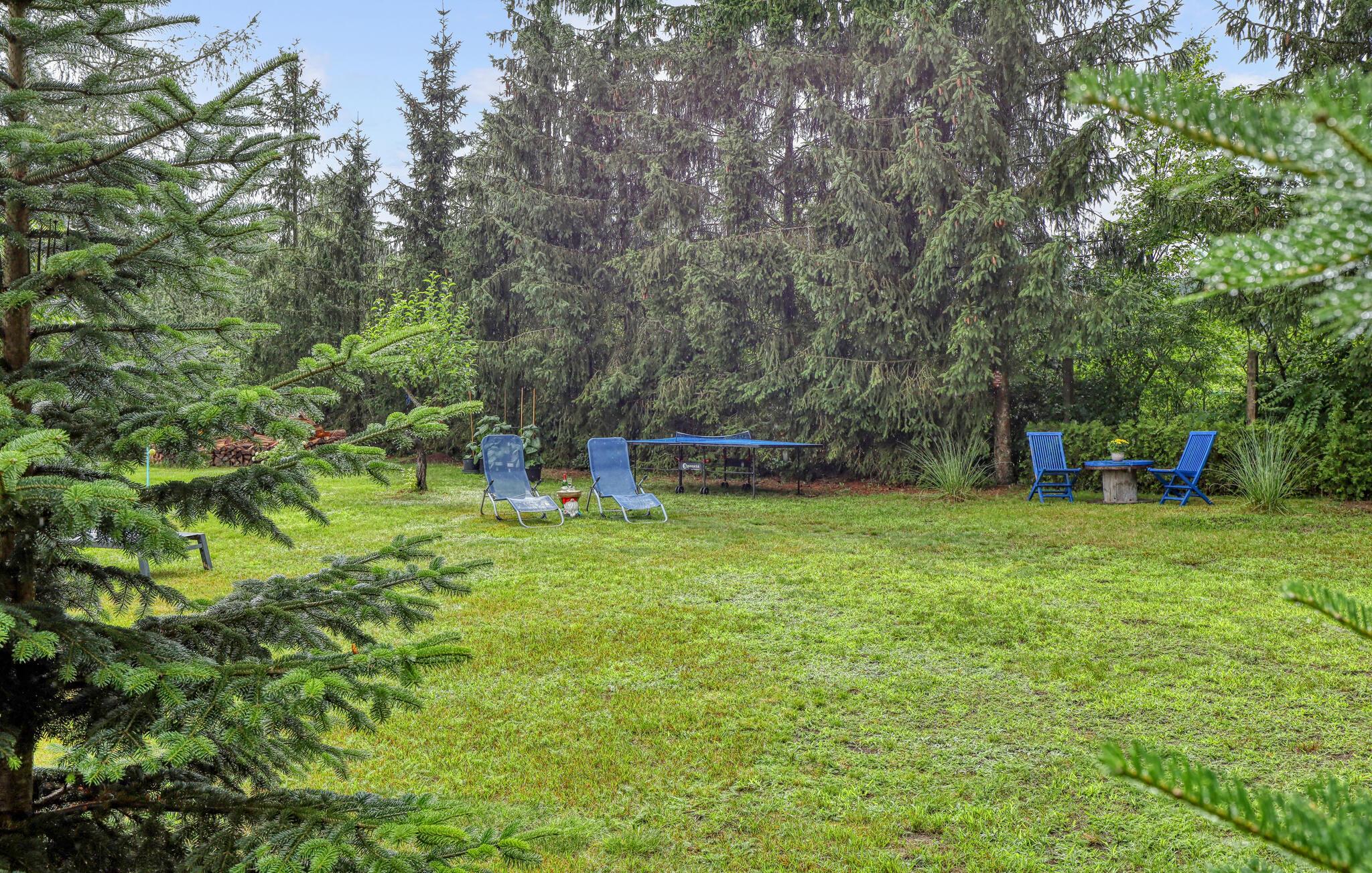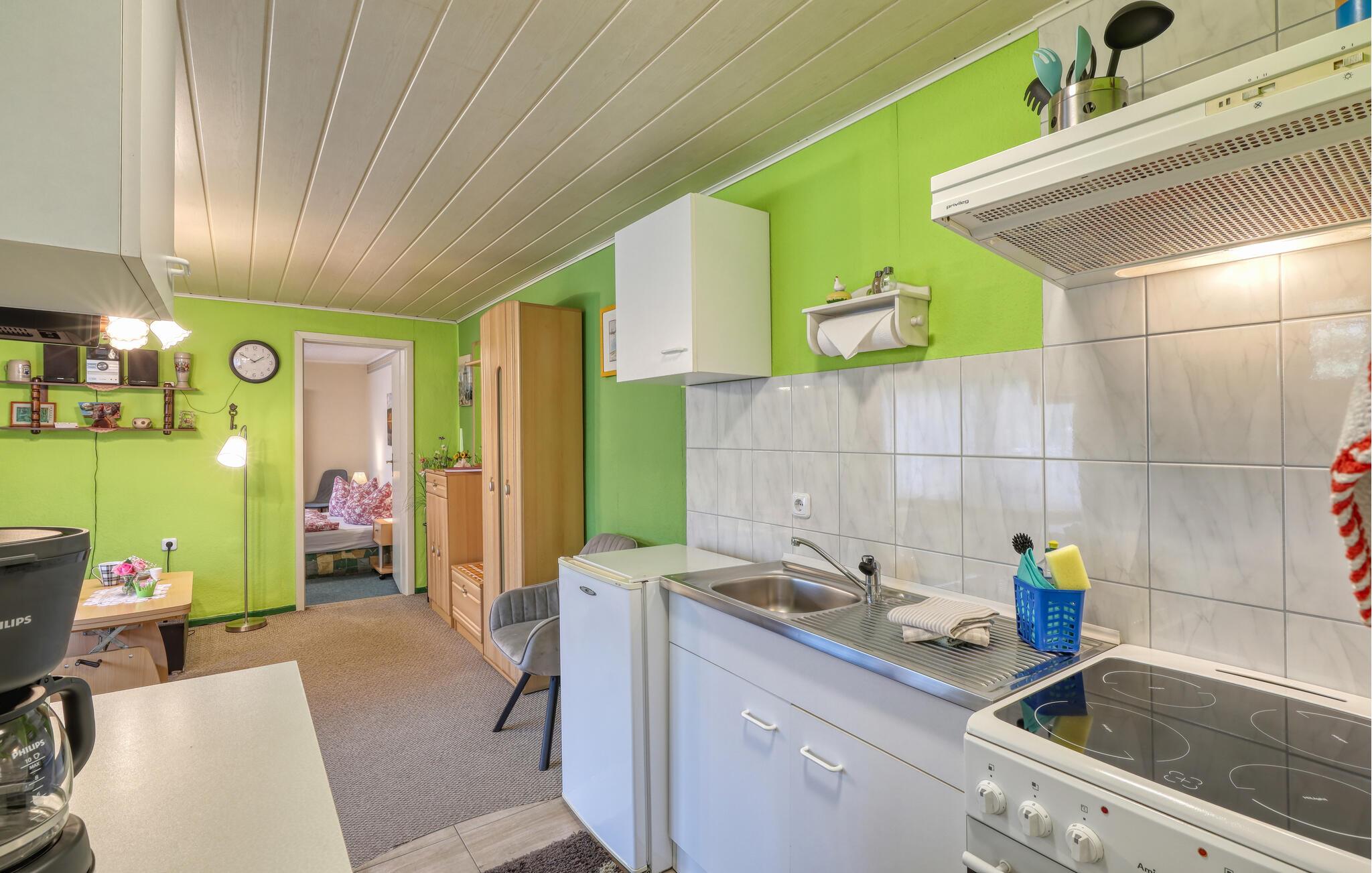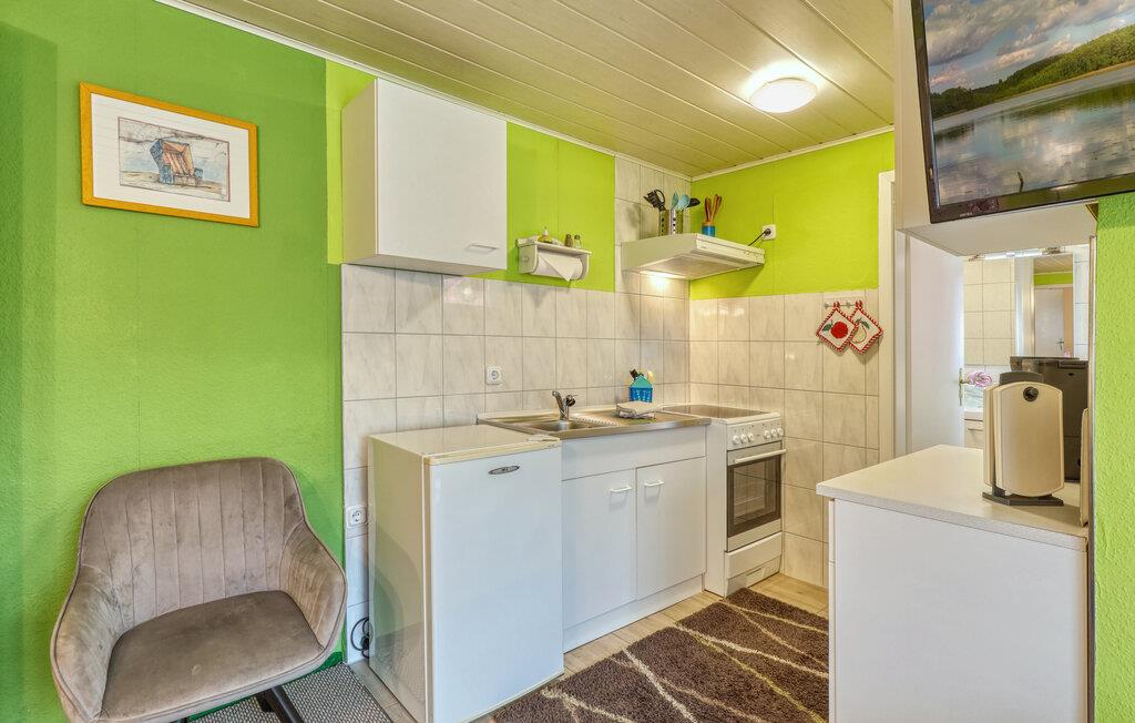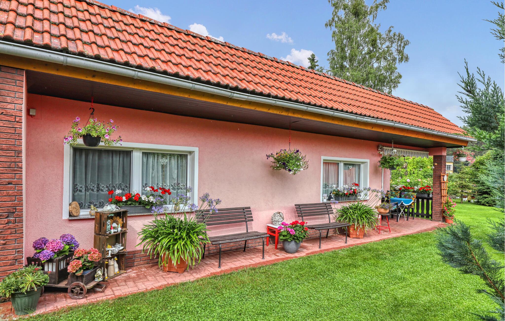 Kun ca. 100 m fra Globsowsøen ligger de to sommerhuse på ejerens velholdte beboelsesejendom. Badepladsen ligger cirka 200 m væk. Dette hus er udstyret med en stue (polstrede møbler, satellit-tv, radio), et soveværelse (1 dobbeltseng, 2 polstrede liggestole), et åbent tekøkken (elkomfur med ovn, køleskab, diverse køkkenmaskiner) og et badeværelse med bad/toilet. Boligen kan opvarmes centralt. WiFi er også tilgængeligt. På det udendørs område er der møbleret terrasse, grill, diverse legeredskaber, parkeringsplads og robåd til fri afbenyttelse. Den samlede pris inkluderer slutrengøring, sengelinned, håndklæder, vand og energi. Altglobsow er en lille landsby i et smukt skovområde, cirka 9 km syd for Fürstenberg. Den lille by Rheinsberg ligger cirka 15 km væk. Globsowsee, en smuk bade- og fiskesø, ligger direkte i byen.