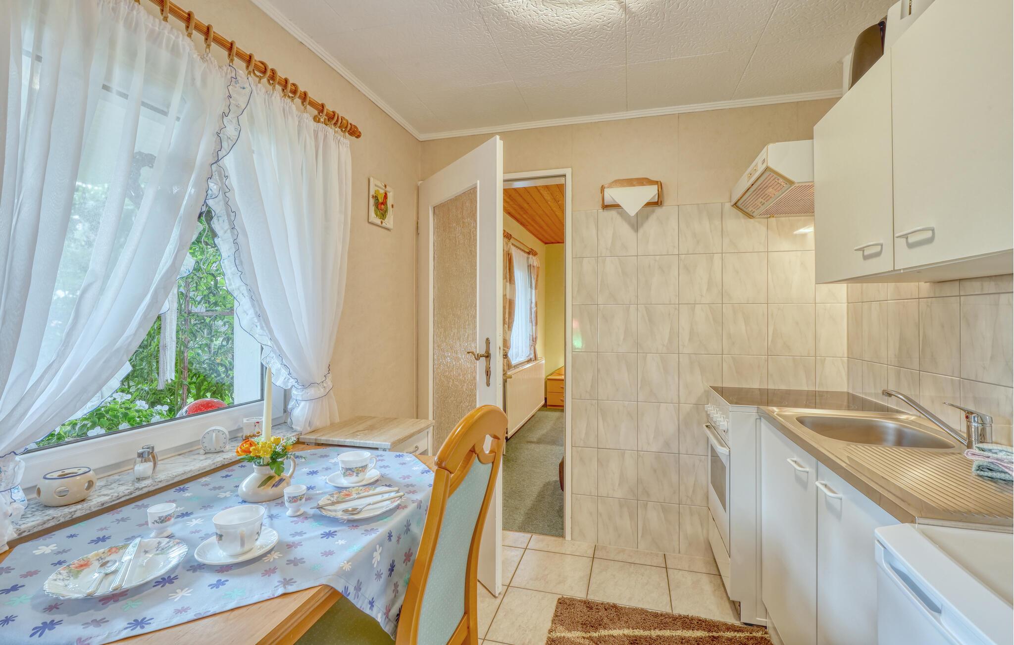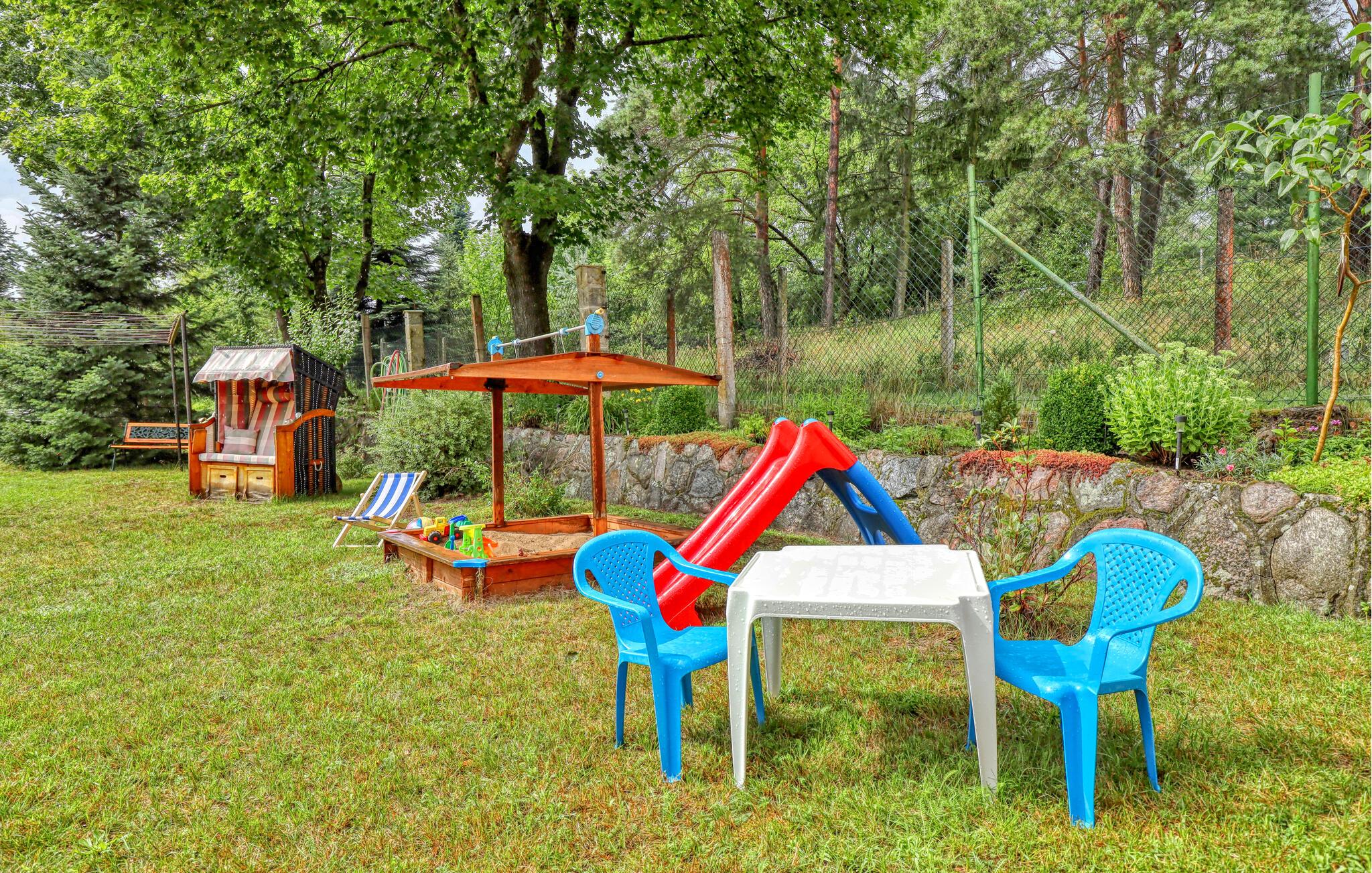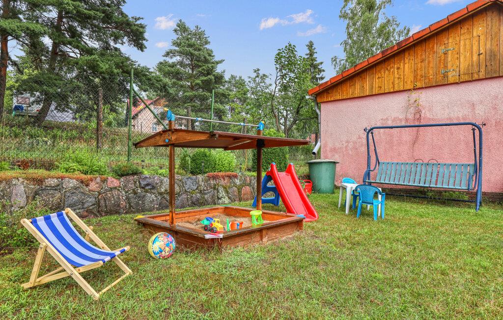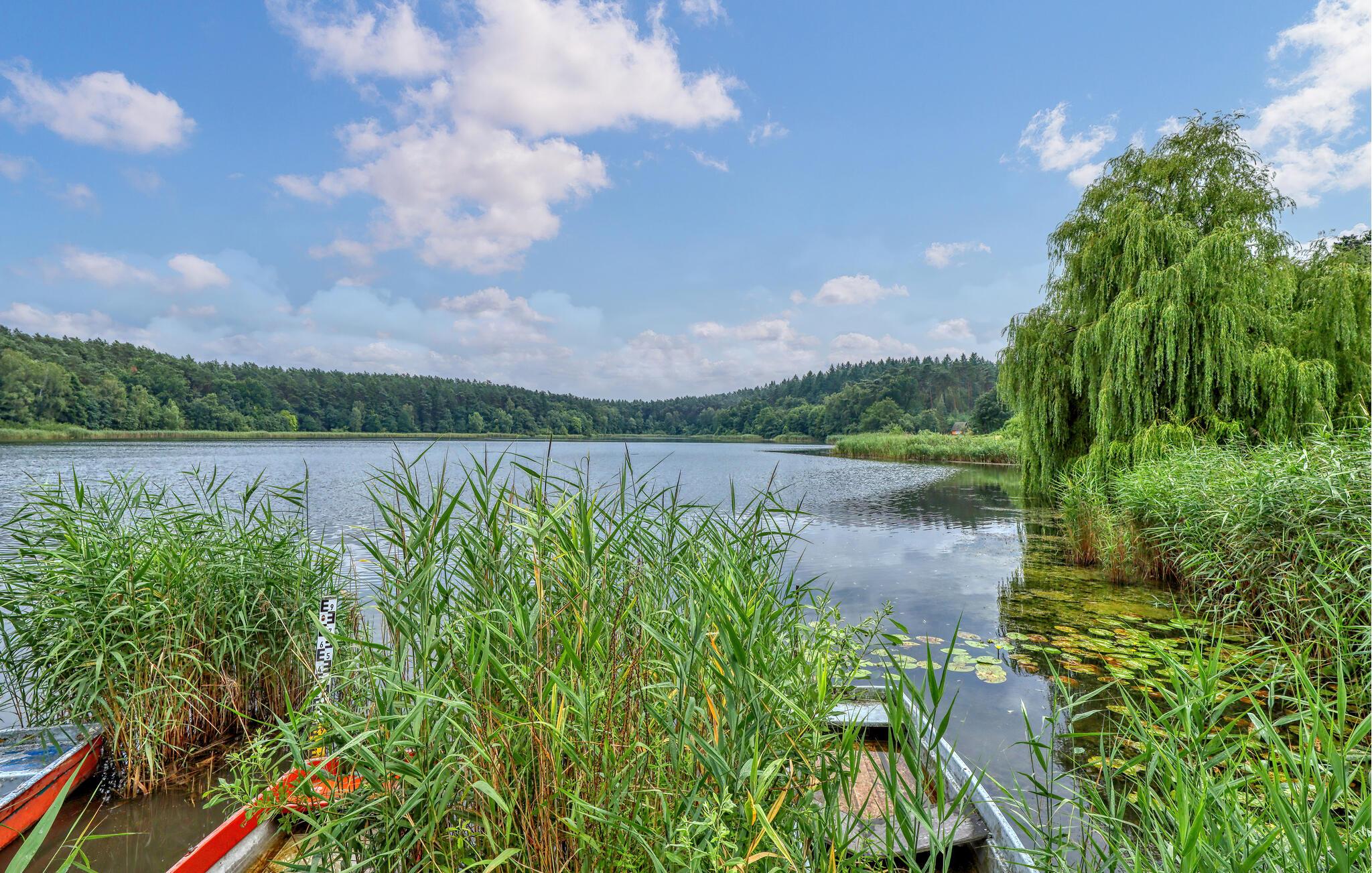 Kun ca. 100 m fra Globsowsøen ligger de to sommerhuse på ejerens velholdte beboelsesejendom. Badepladsen ligger cirka 200 m væk. Dette hus er udstyret med en stue (polstrede møbler, satellit-tv, radio), et soveværelse (1 dobbeltseng, 2 polstrede liggestole), et åbent tekøkken (elkomfur med ovn, køleskab, diverse køkkenmaskiner) og et badeværelse med bad/toilet. Boligen kan opvarmes centralt. WiFi er også tilgængeligt. På det udendørs område er der møbleret terrasse, grill, diverse legeredskaber, parkeringsplads og robåd til fri afbenyttelse. Den samlede pris inkluderer slutrengøring, sengelinned, håndklæder, vand og energi. Altglobsow er en lille landsby i et smukt skovområde, cirka 9 km syd for Fürstenberg. Den lille by Rheinsberg ligger cirka 15 km væk. Globsowsee, en smuk bade- og fiskesø, ligger direkte i byen.