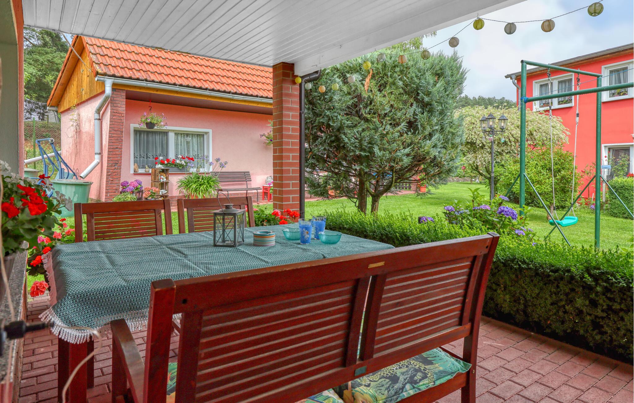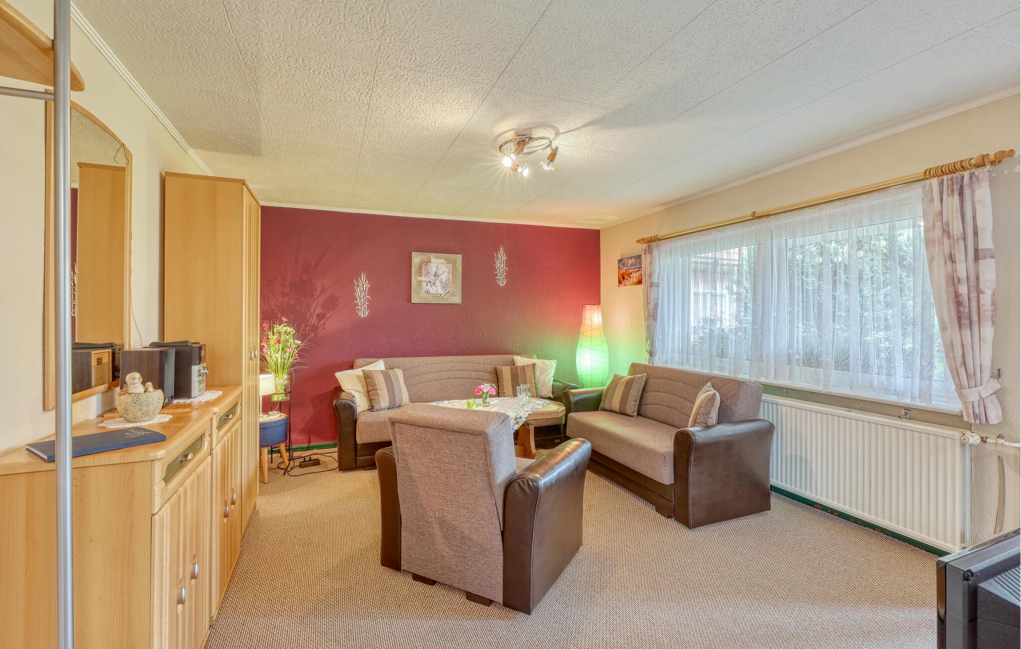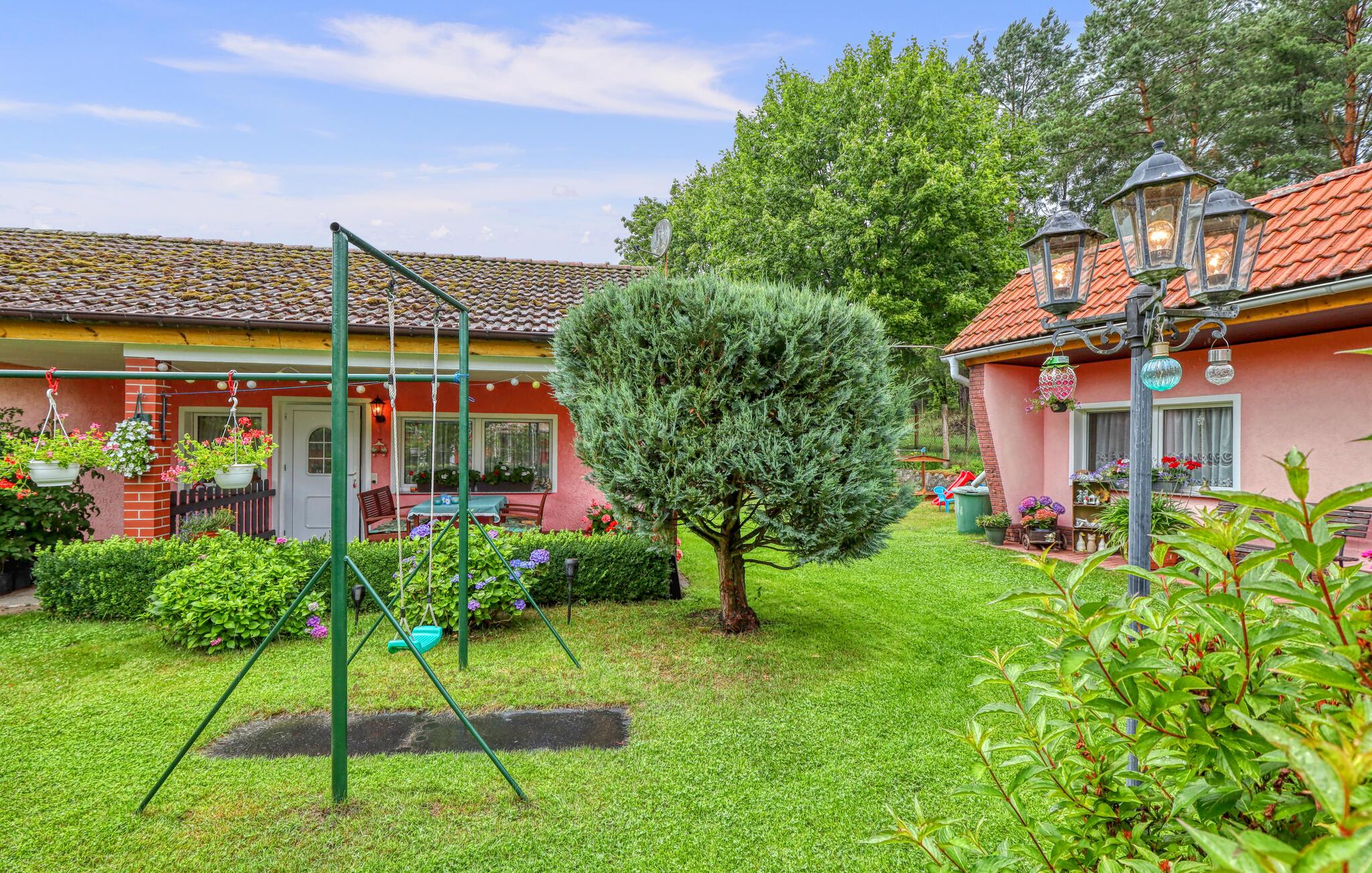 Kun ca. 100 m fra Globsowsøen ligger de to sommerhuse på ejerens velholdte beboelsesejendom. Badepladsen ligger cirka 200 m væk. Dette hus er udstyret med en stue (polstrede møbler, satellit-tv, radio), et soveværelse (1 dobbeltseng, 2 polstrede liggestole), et åbent tekøkken (elkomfur med ovn, køleskab, diverse køkkenmaskiner) og et badeværelse med bad/toilet. Boligen kan opvarmes centralt. WiFi er også tilgængeligt. På det udendørs område er der møbleret terrasse, grill, diverse legeredskaber, parkeringsplads og robåd til fri afbenyttelse. Den samlede pris inkluderer slutrengøring, sengelinned, håndklæder, vand og energi. Altglobsow er en lille landsby i et smukt skovområde, cirka 9 km syd for Fürstenberg. Den lille by Rheinsberg ligger cirka 15 km væk. Globsowsee, en smuk bade- og fiskesø, ligger direkte i byen.