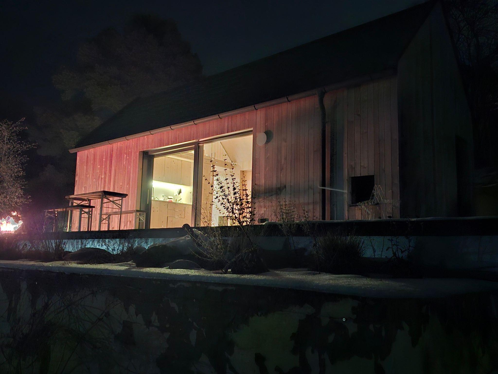 Das ebenerdige Schlafzimmer mit Doppelbett (160x200cm) und eine über Leiter erreichbare Schlafkoje (140x200cm) bieten Platz für bis zu vier Personen. Die Küche ist mit Doppelinduktionskochfeld, Geschirr, Kühlschrank, Spülmaschine und Extras wie Kaffee und Tee ausgestattet. Im Bad gibt es Dusche, WC und Handtücher. Terrasse, Sonnenliegen, Sitzsäcke, Feuerschale und ab 4 Nächten ein Hot Tub ohne Aufpreis.