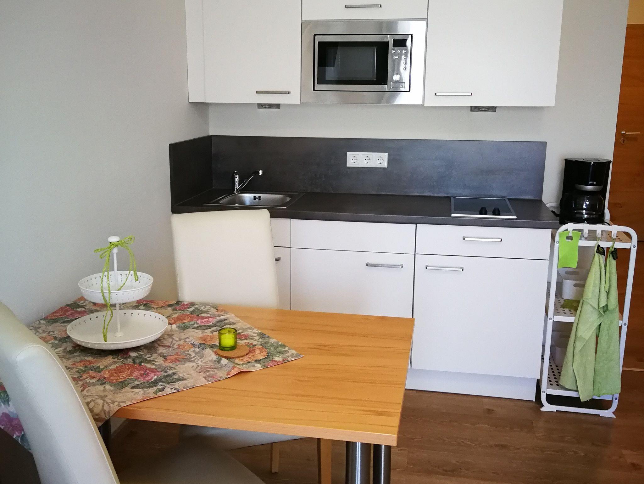 Es steht Ihnen eine gut ausgestattete Küchenzeile mit 2er Ceranfeld, Spüle, Mikrowelle und Kühlschrank zur Verfügung. Ein Esstisch und zwei Stühle sind vorhanden. Das Doppelbett ist als Einzelbetten nutzbar. Bitte geben sie bei Buchung an wie sie es wünschen. Das Badezimmer ist mit Dusche, Badewanne und WC eingerichtet.