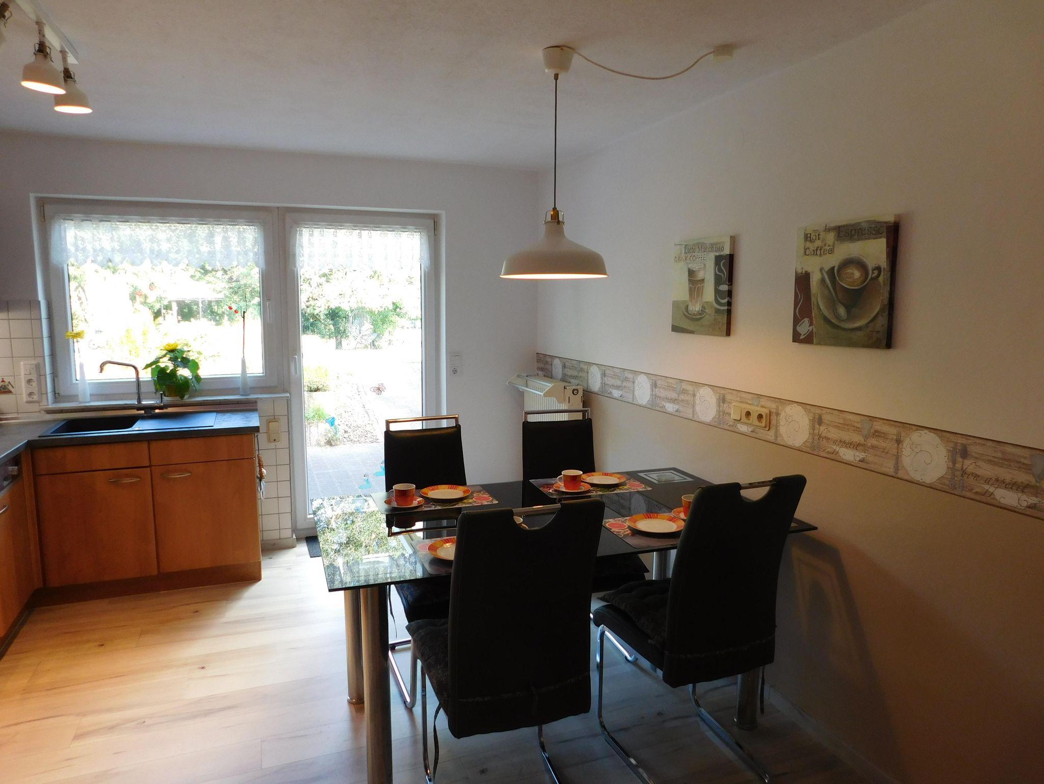 In der ebenerdigen Ferienwohnung Gartenglück stehen Ihnen ein Doppel-Schlafzimmer und das helle Wohnzimmer mit offener Küche, beides mit Zugang zum Garten zur Verfügung. Im geräumigen Badezimmer gibt es eine ebenerdige Dusche. Die offene, voll ausgestattete Küche lädt zum gemeinsamen Kochen und Genießen ein. Im Wohnzimmer steht Ihnen eine moderne Couch zur Verfügung, die auf Wunsch ausklappbar ist und als Bett genutzt werden kann.