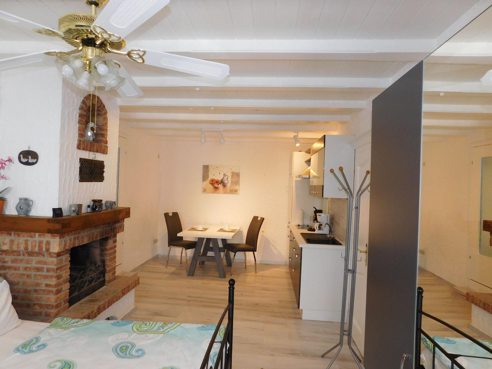 Das Kaminstübchen verfügt über einen kombinierten Schlaf- und Wohnraum mit offener Küche und einem Badezimmer mit Dusche, WC. Auf Wunsch steht Ihnen auch im Kaminstübchen der Zugang in unseren großen Garten offen.
