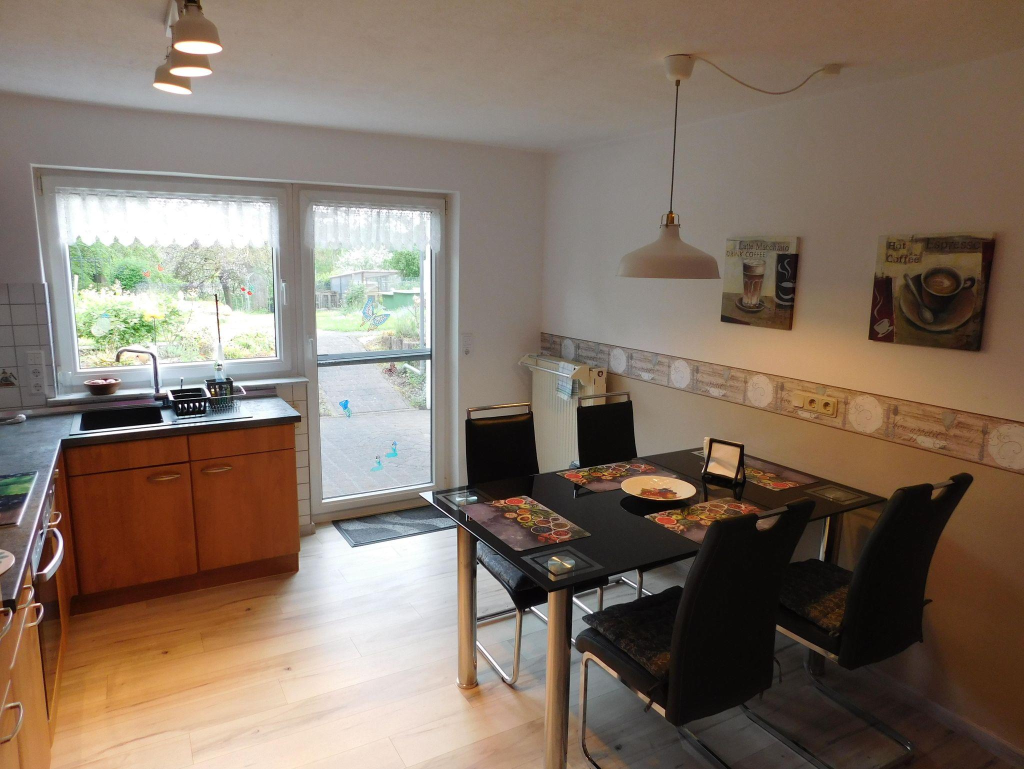 In der ebenerdigen Ferienwohnung Gartenglück stehen Ihnen ein Doppel-Schlafzimmer und das helle Wohnzimmer mit offener Küche, beides mit Zugang zum Garten zur Verfügung. Im geräumigen Badezimmer gibt es eine ebenerdige Dusche. Die offene, voll ausgestattete Küche lädt zum gemeinsamen Kochen und Genießen ein. Im Wohnzimmer steht Ihnen eine moderne Couch zur Verfügung, die auf Wunsch ausklappbar ist und als Bett genutzt werden kann.