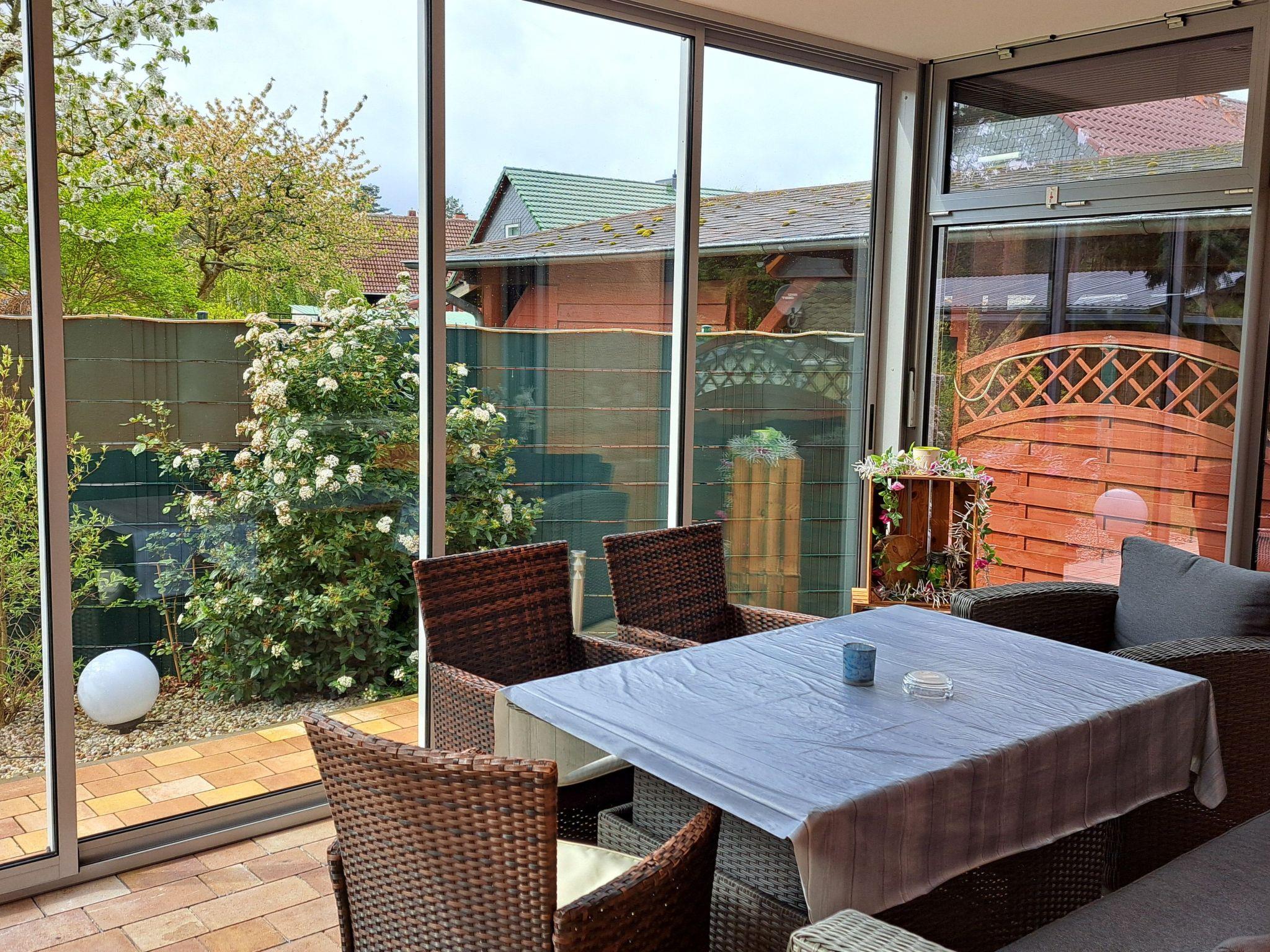 Inside the holiday home you will find cosy and well-equipped rooms. Two bedrooms, both of which can be darkened, guarantee restful nights. Two bathrooms, one of which has both a shower and a bathtub, offer enough comfort and privacy for all guests. Other amenities include a coffee machine, an espresso pot and a dishwasher for your convenience. A special highlight is the spacious conservatory, which invites you to spend relaxing hours at any time of year, paired with a warming fireplace and a games console for fun family evenings.