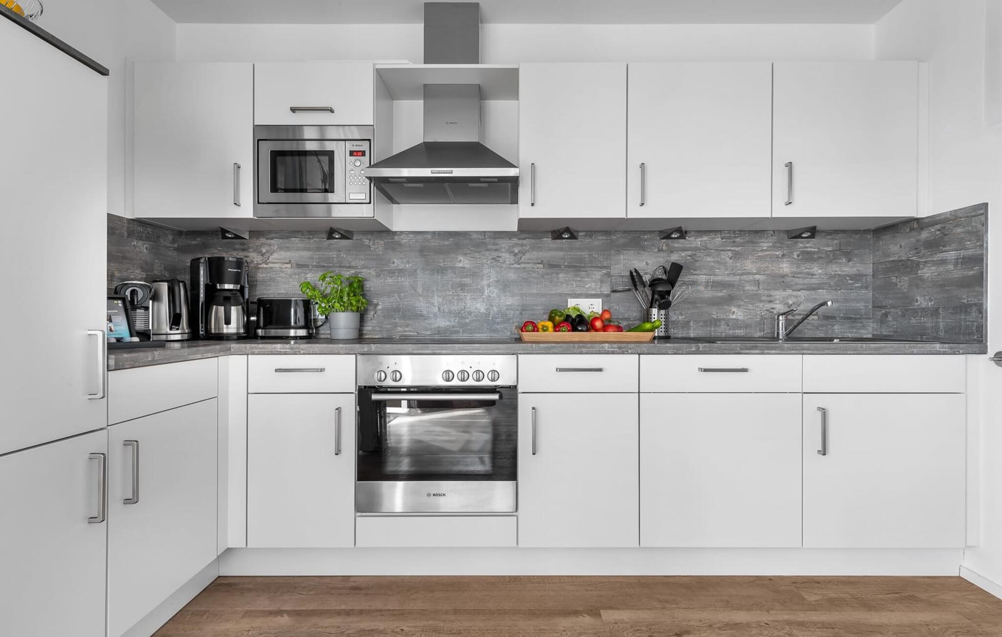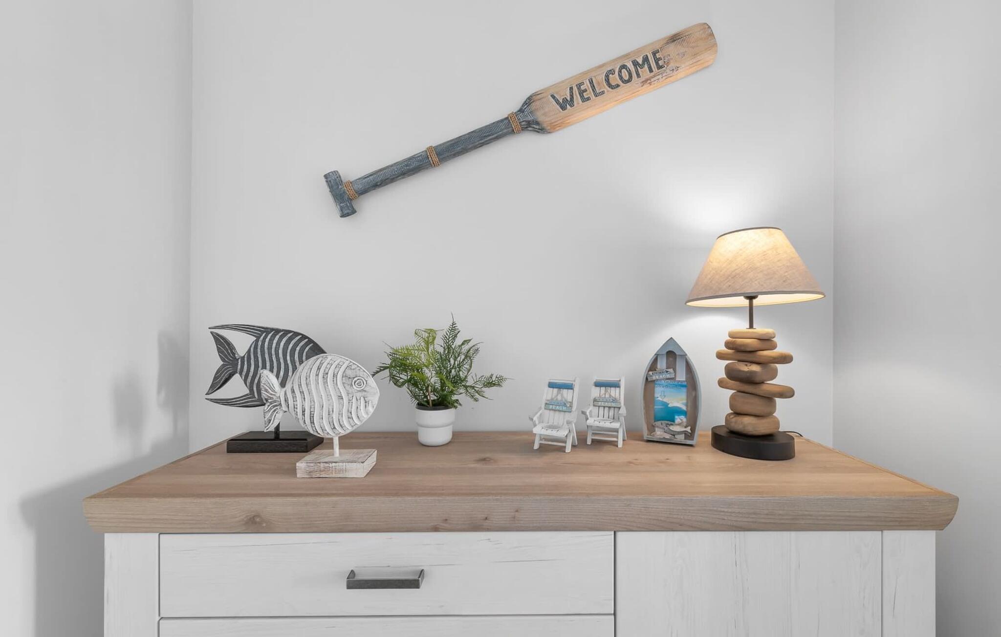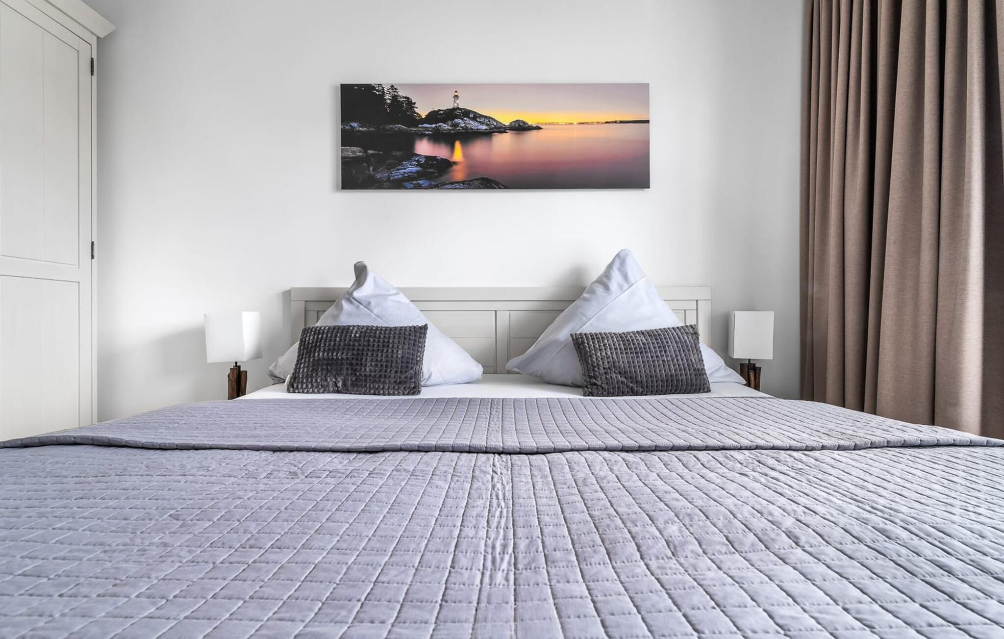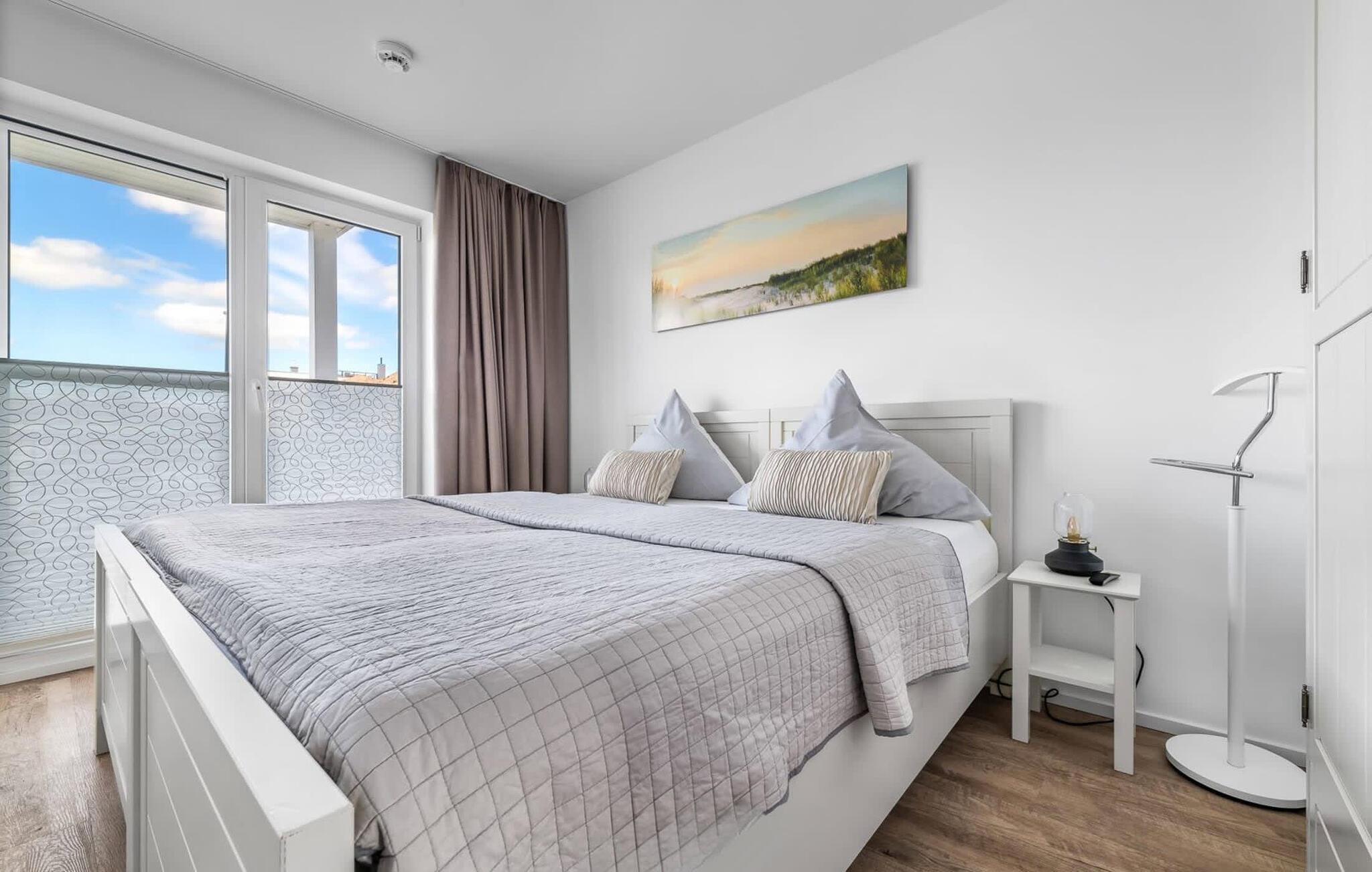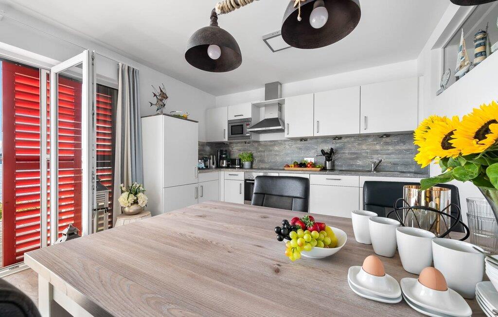 En fantastisk udsigt viser sig i opholdsområdet gennem gulv-til-loft vinduer ud over den tilstødende terrasse med udsigt over lystbådehavnen. Havnebiografen sørger for underholdning under en hyggelig grillaften eller en romantisk middag med levende lys.