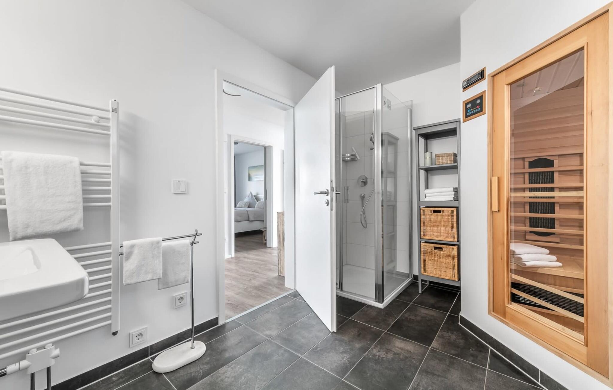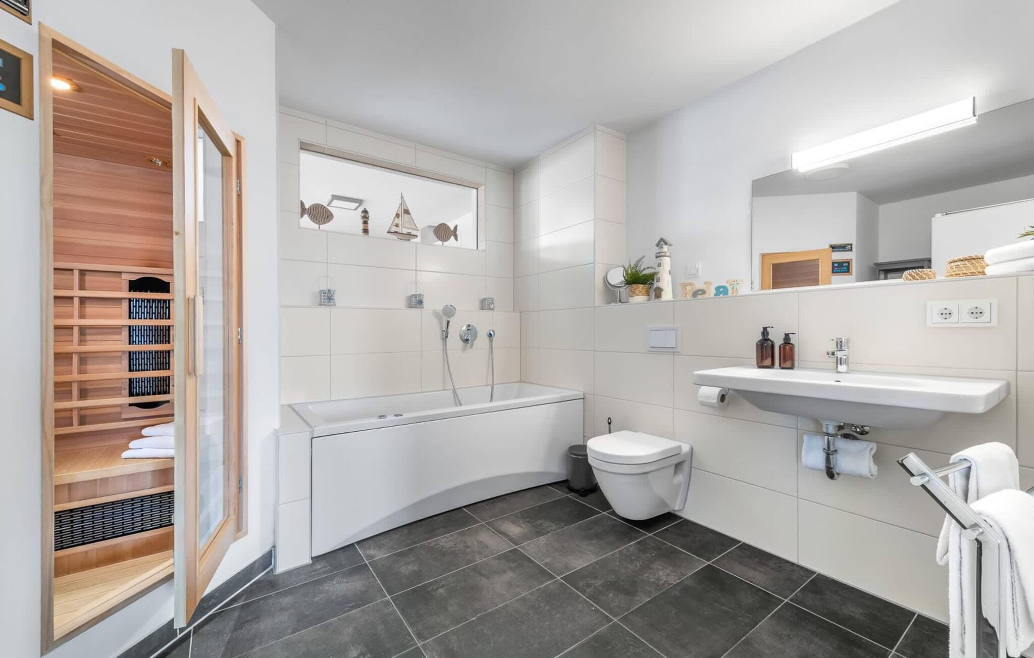 Jer, der holder af wellness, kan se frem til en infrarød sauna (varmekabine) med hi-fi lydsystem og LED farvelysterapi samt et spabad efter en gåtur på stranden. Bruseren giver ekstra komfort.