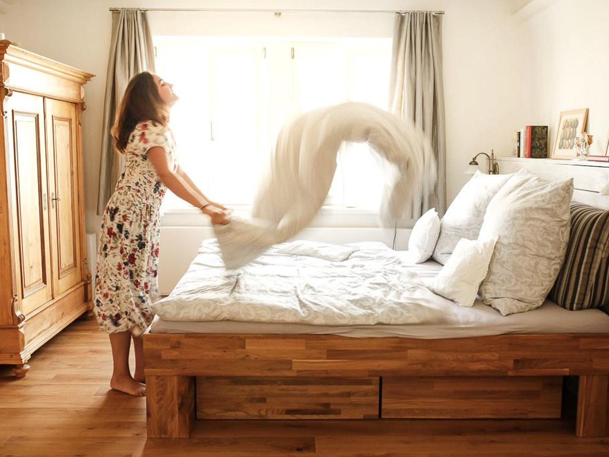 Bekassine * * * Die ehemalige Gute Stube mit der denkmalgeschützten verputzen Balkendecke bietet auf 36 qm Wohn- und Schlafraum für 2 Personen (Zustellbett auf Anfrage). Hochwertige Ausstattung und solides Handwerk prägen den Stil dieser Wohnung: Ankommen und sich zuhause fühlen. Vom Deutschen Tourismus Verband mit drei Sternen zertifiziert. Alte Dielenbretter fanden nach einem Anstrich mit Holzveredlung einen neuen Einsatz als Kopfteil des neuen Bettes. Je nach Bedarf werden dicke und dünne Daunendecken (allergikergeprüft) bereitgehalten. Auch wenn es draußen regnet- drinnen lässt es sich gemütlich machen. Für gekühlte Getränke steht ein Kühlschrank zur Verfügung - oder vielleicht einen heißen Tee/Kaffee machen? Die Küchen sind alle umfangreich ausgestattet: Wasserkocher, Toaster, Mixer. Weitere Haushaltsgeräte auf Anfrage. Tee und frisch gemahlener Kaffe, Milch und Zucker stehen täglich bereit. Hunde sind gestattet.